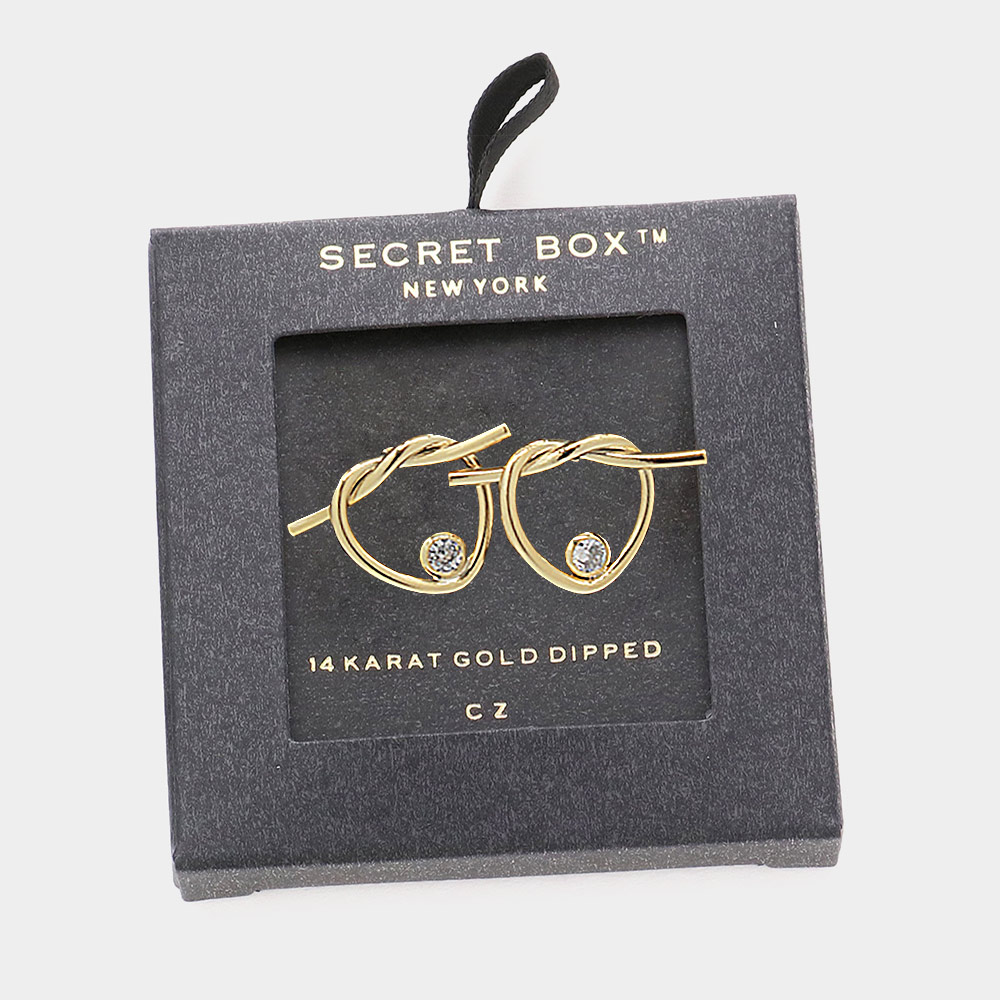 Secret Box _ 14K Gold Dipped CZ Knot Heart Stud Earrings