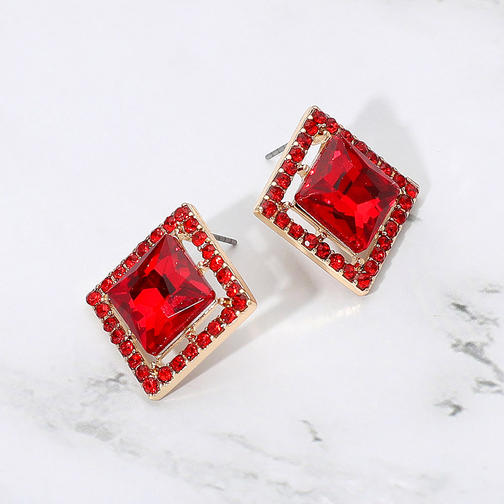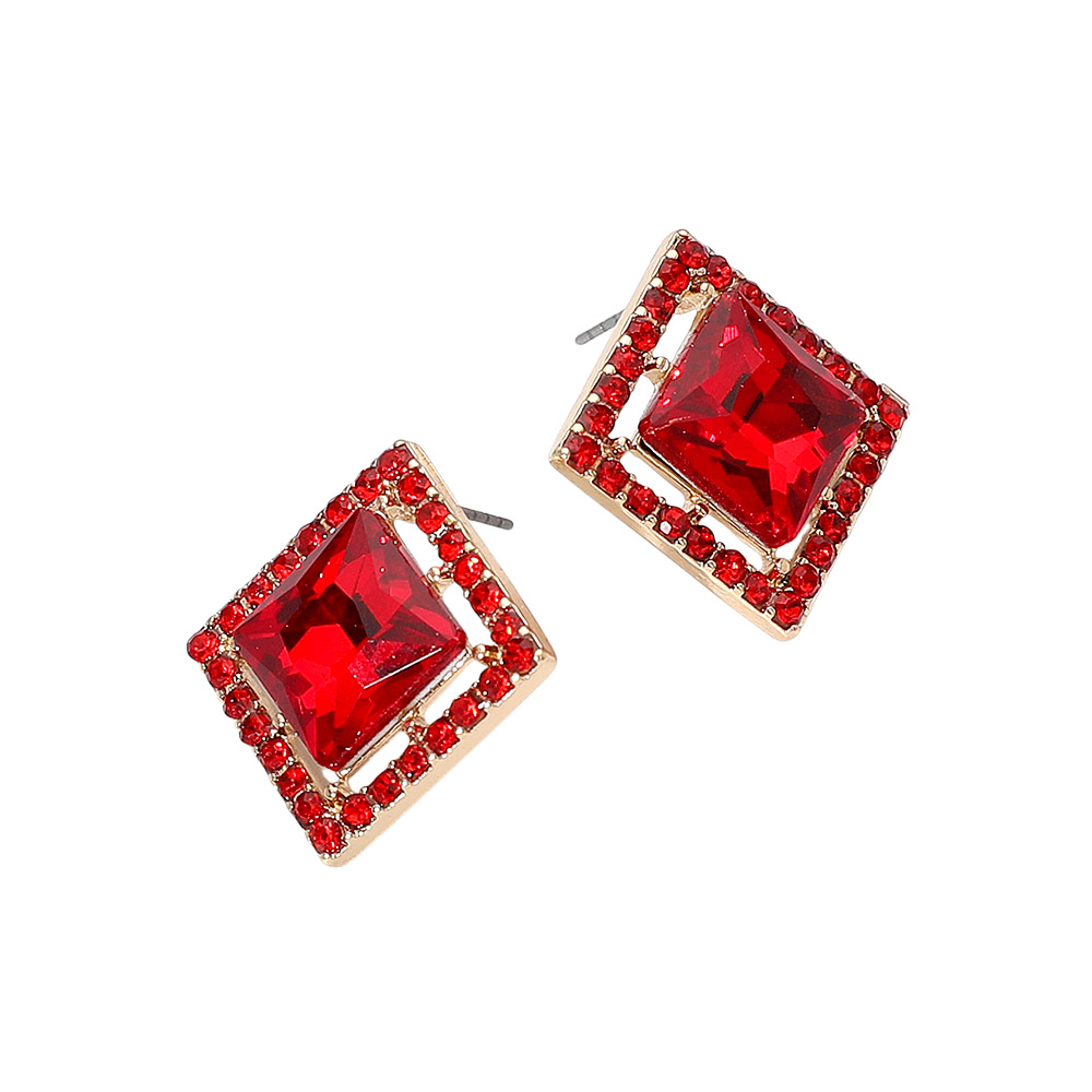 Details • Size : 1" X 1" • Post Back • Elegant square-cut gemstone stud earrings featuring a framed design with sparkling accent stones. A chic and modern accessory that adds refined shine to both everyday outfits and special occasions. • Lead and Nickel Compliant