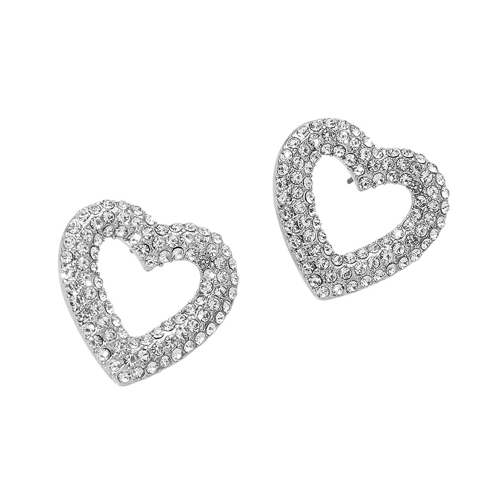 • Make a statement of love and style with these sparkling heart stud earrings. Adorned with shimmering stones in an open-heart design, they catch the light beautifully and add a touch of glamour to any look, from casual chic to special occasion elegance.