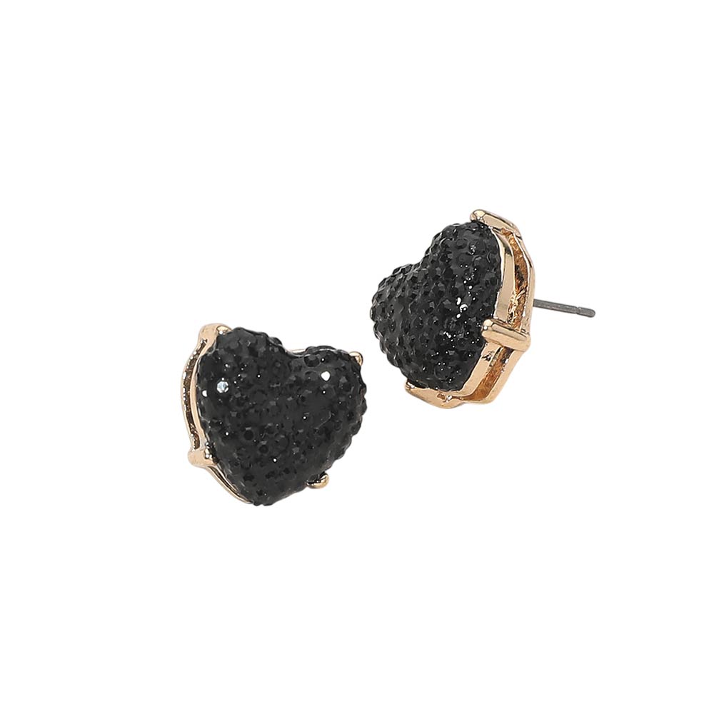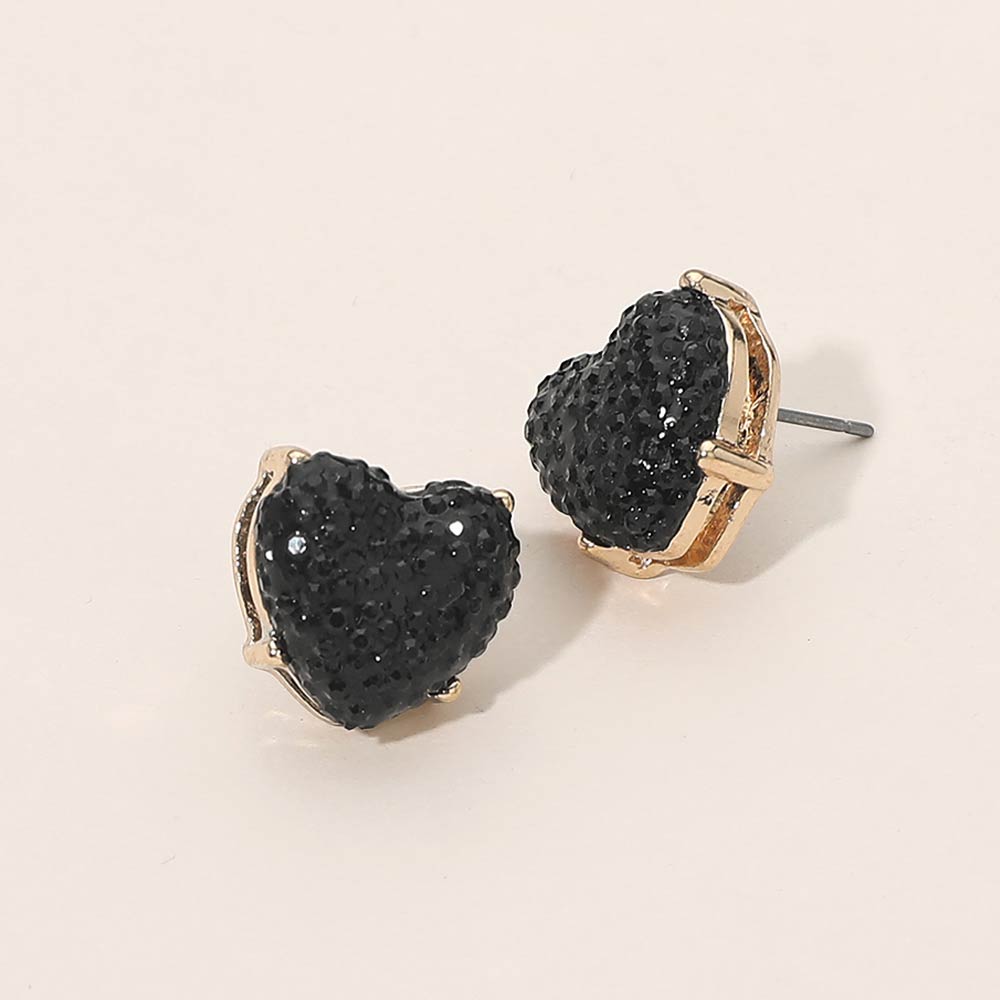• Playful heart stud earrings featuring a raised textured surface that adds dimension and sparkle to a classic silhouette. Designed in a compact stud style for comfortable all day wear, these earrings make a charming statement for gift shops, seasonal collections, boutiques, and everyday fashion looks with a fun, romantic touch.