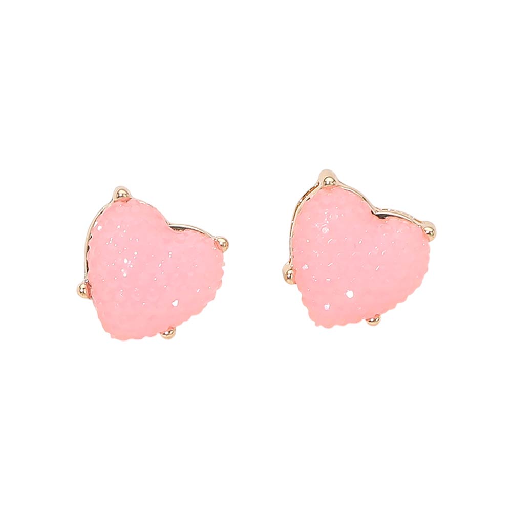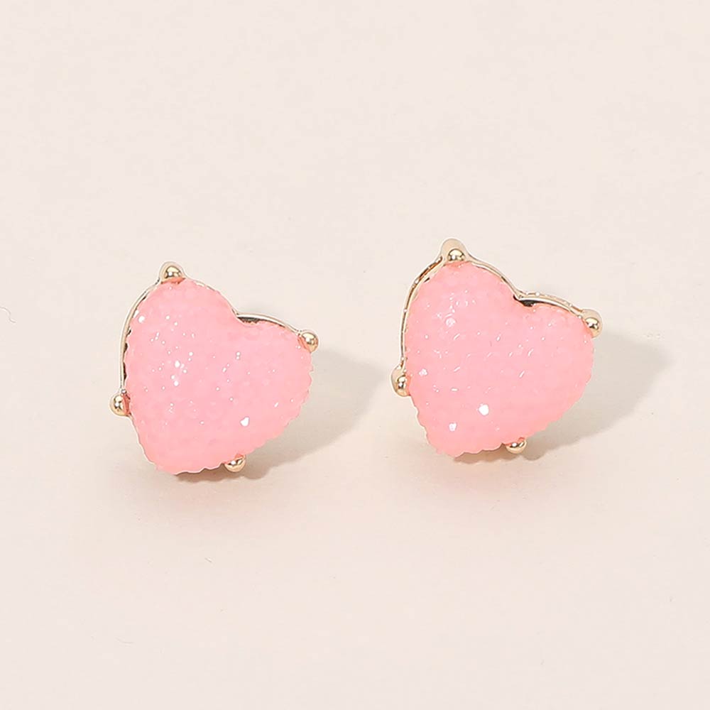 • Playful heart stud earrings featuring a raised textured surface that adds dimension and sparkle to a classic silhouette. Designed in a compact stud style for comfortable all day wear, these earrings make a charming statement for gift shops, seasonal collections, boutiques, and everyday fashion looks with a fun, romantic touch.