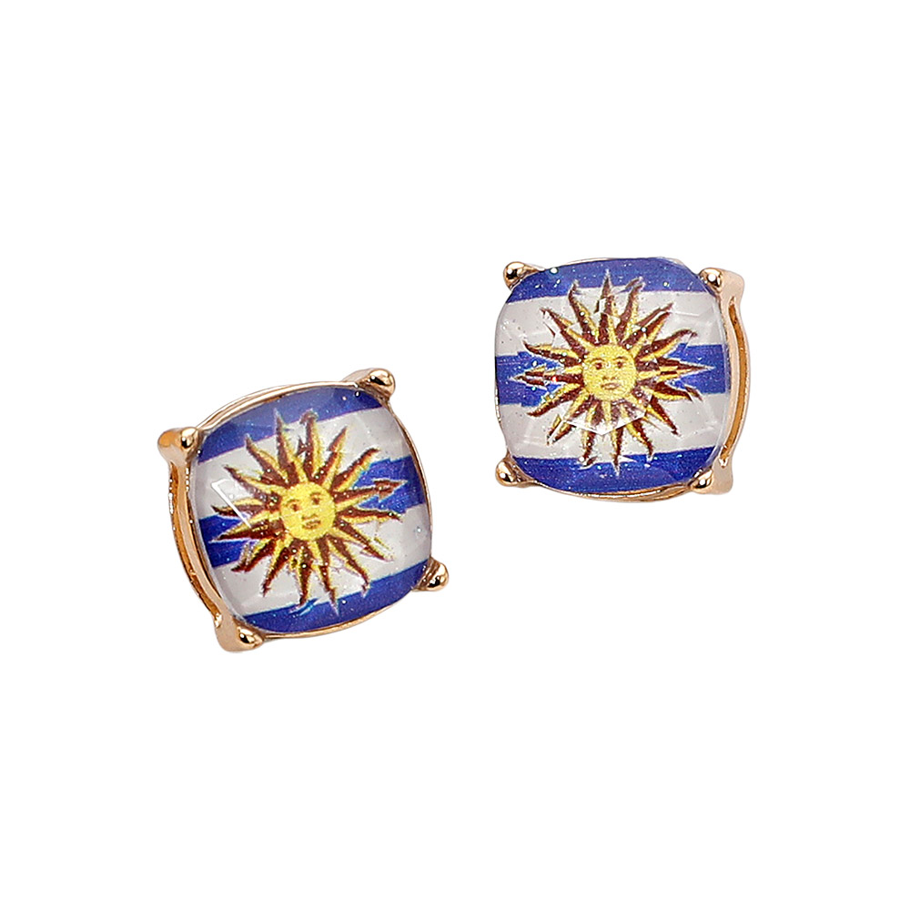 • Show your pride with these Uruguay flag stud earrings, featuring the iconic sun emblem design framed in a sleek setting. Perfect for patriotic celebrations, travel, or everyday wear, these earrings combine national spirit with contemporary elegance for a meaningful, stylish accessory.