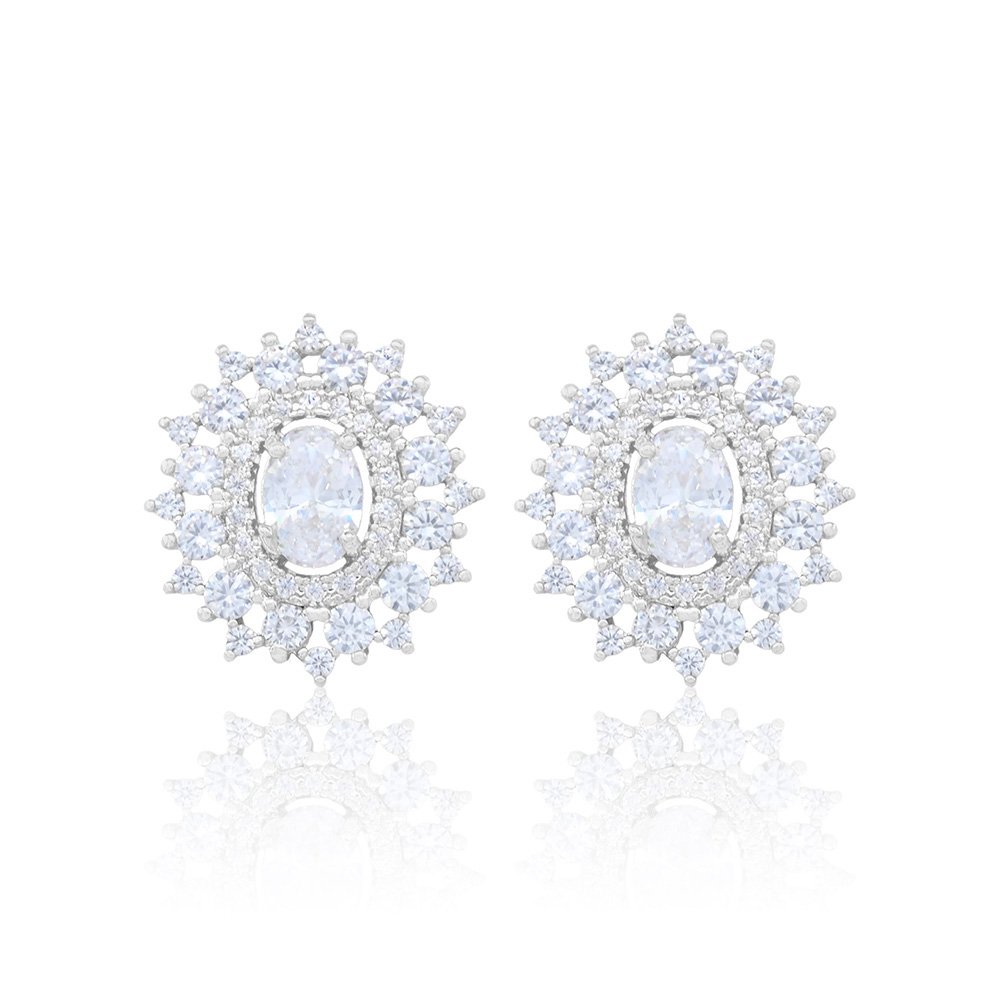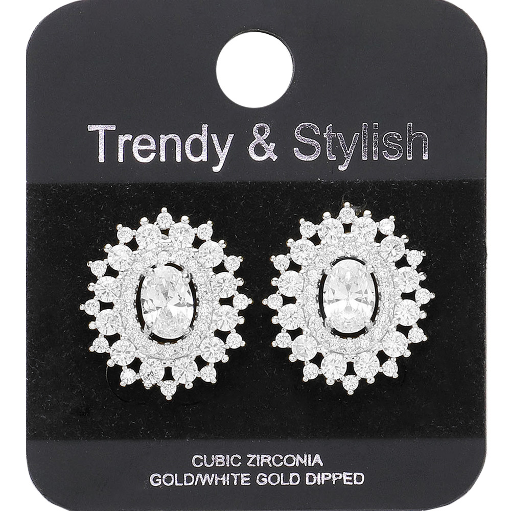 White Gold Dipped Oval CZ Stone Pointed Stud Earrings
