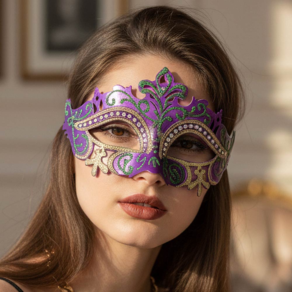 Details • Size : 7.75" X 4" • Ornate masquerade eye mask featuring an elegant cutout design with decorative detailing for a dramatic look. Ideal for masquerade balls, Mardi Gras, costume parties, themed events, performances, and formal celebrations where a bold and mysterious style is desired.