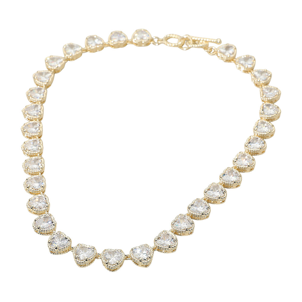 14K Gold Plated CZ Heart Stone Cluster Link Toggle Necklace 14K Gold Plated CZ Heart Stone Cluster Link Toggle Necklace 14K Gold Plated CZ Heart Stone Cluster Link Toggle Necklace