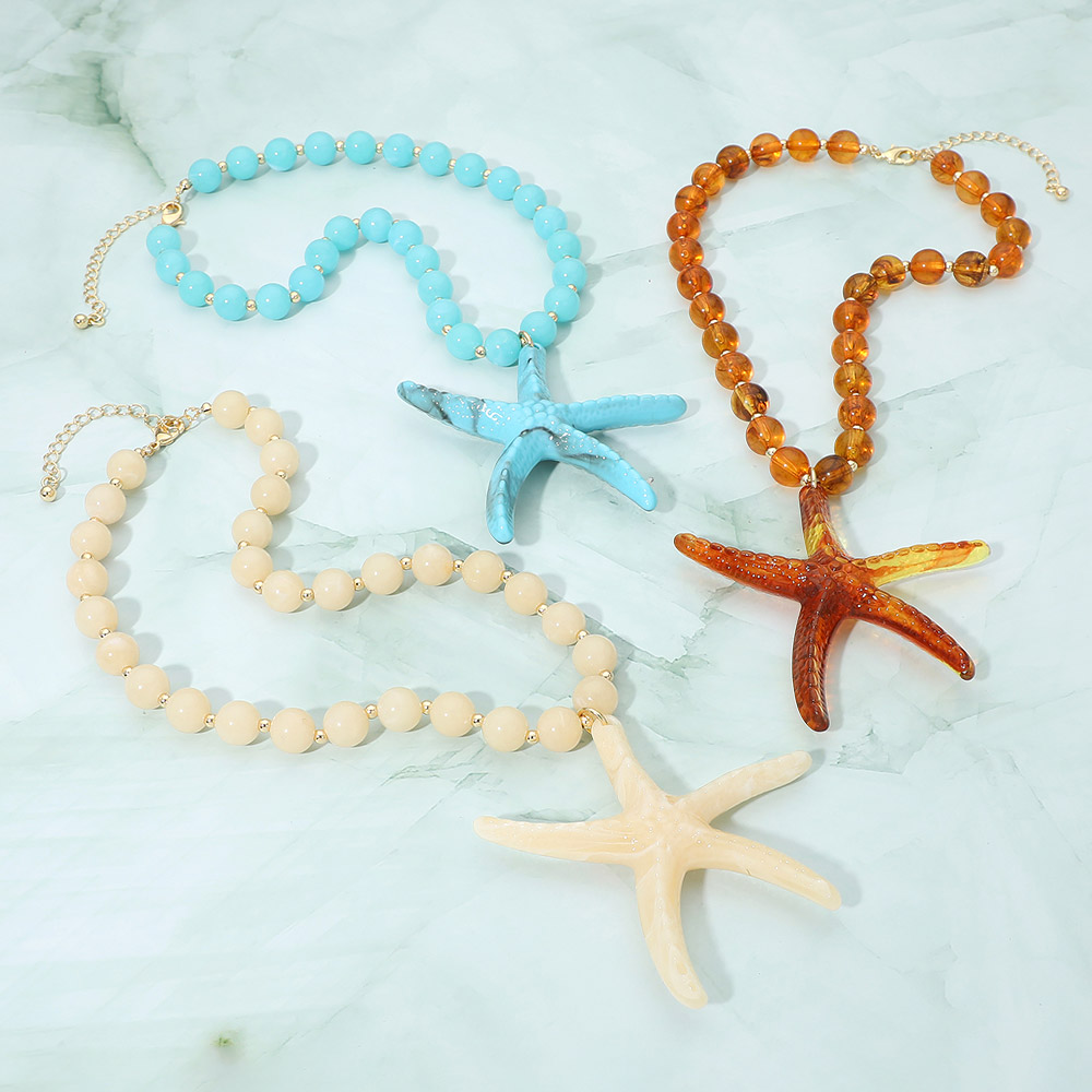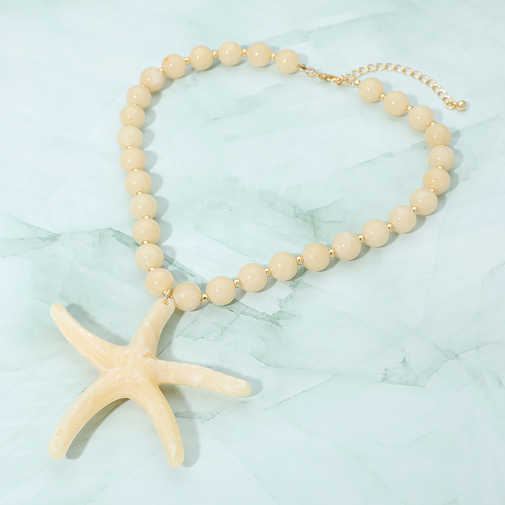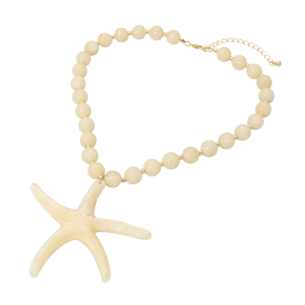 Details • Necklace Size : 17.5" + 3" L • Pendant Size : 3.5" X 3.5" • Eye-catching statement necklace featuring a bold starfish pendant paired with smooth beaded detailing and an adjustable chain for versatile styling. A standout accessory for beach-inspired looks, resort wear, summer outfits, and casual fashion, perfect for adding playful charm and a coastal-inspired accent. • Lead and Nickel Compliant