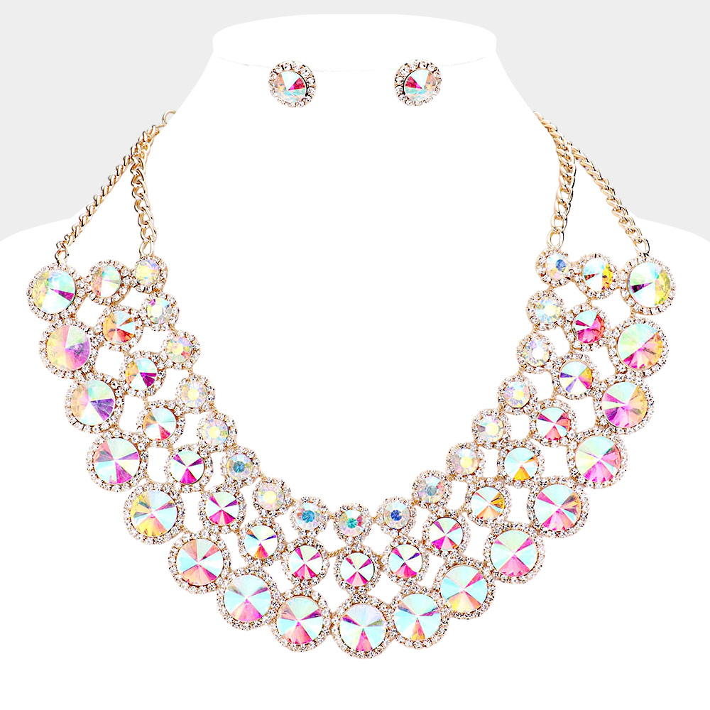 Iridescent Teardrop Cluster Statement Necklace