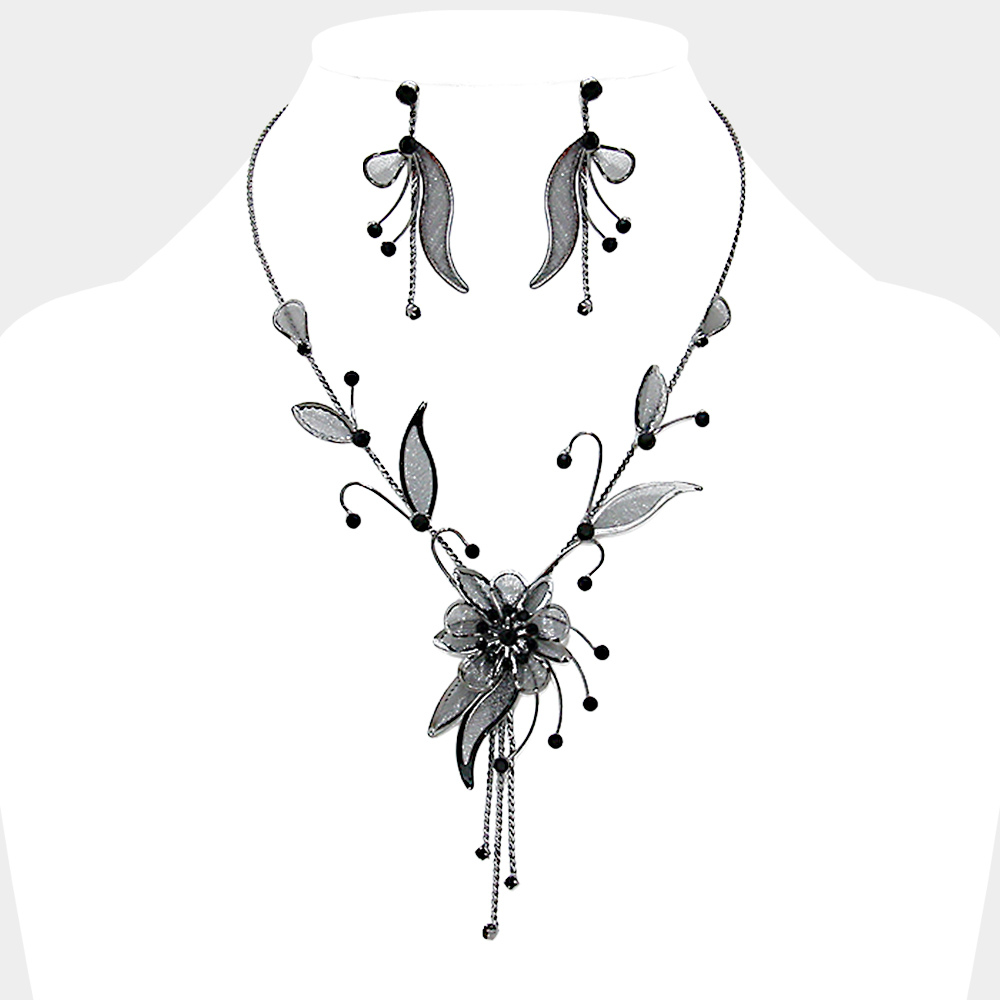 Flower Glittered Tropical Leaf Link Dangle Earrings