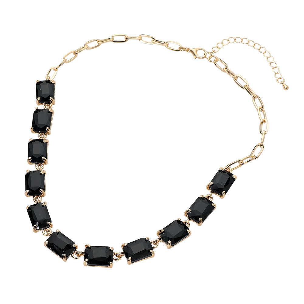 • This elegant gemstone chain necklace features a row of precisely cut stones linked with a sleek chain for a refined, modern look. Its adjustable closure ensures a comfortable fit, making it a sophisticated accessory for formal occasions, evening wear, or adding a statement touch to everyday style.