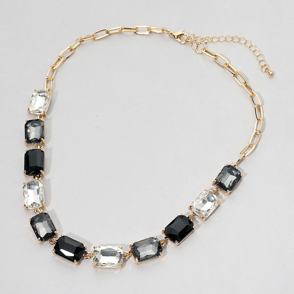 • This elegant gemstone chain necklace features a row of precisely cut stones linked with a sleek chain for a refined, modern look. Its adjustable closure ensures a comfortable fit, making it a sophisticated accessory for formal occasions, evening wear, or adding a statement touch to everyday style.