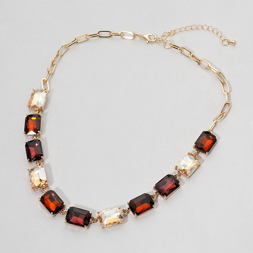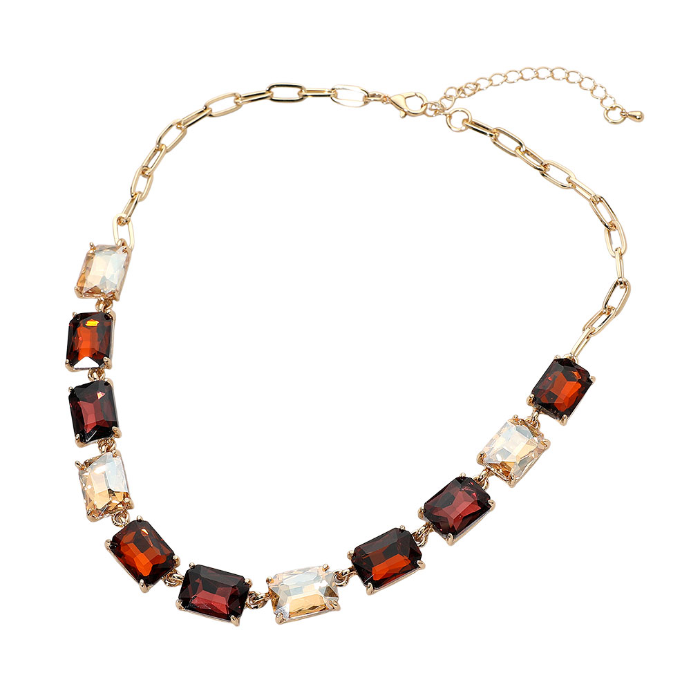 • This elegant gemstone chain necklace features a row of precisely cut stones linked with a sleek chain for a refined, modern look. Its adjustable closure ensures a comfortable fit, making it a sophisticated accessory for formal occasions, evening wear, or adding a statement touch to everyday style.