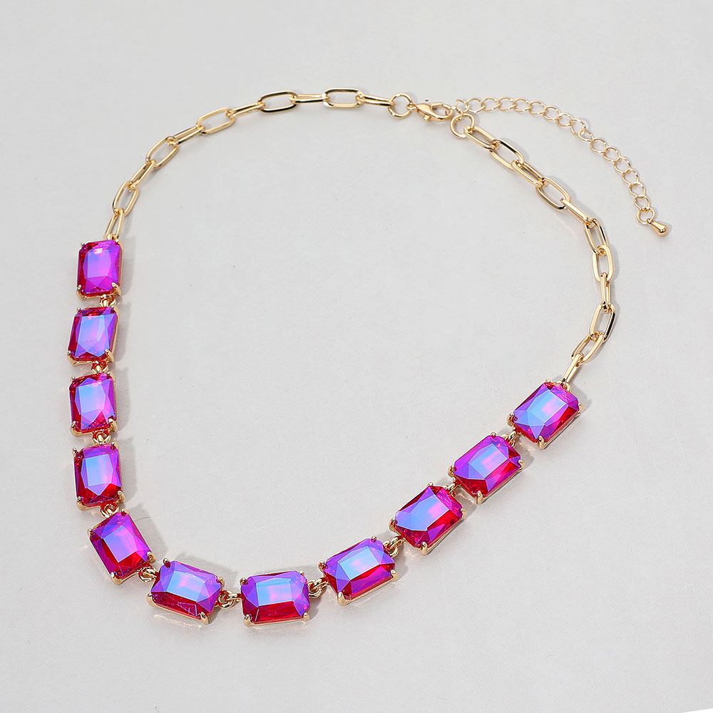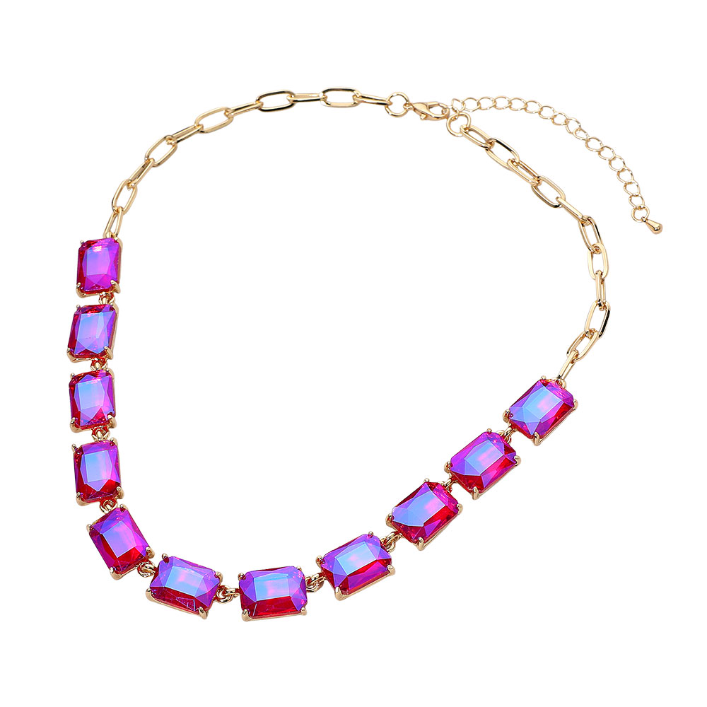 Cushion Rectangular Stone Cluster Link Evening Necklace
