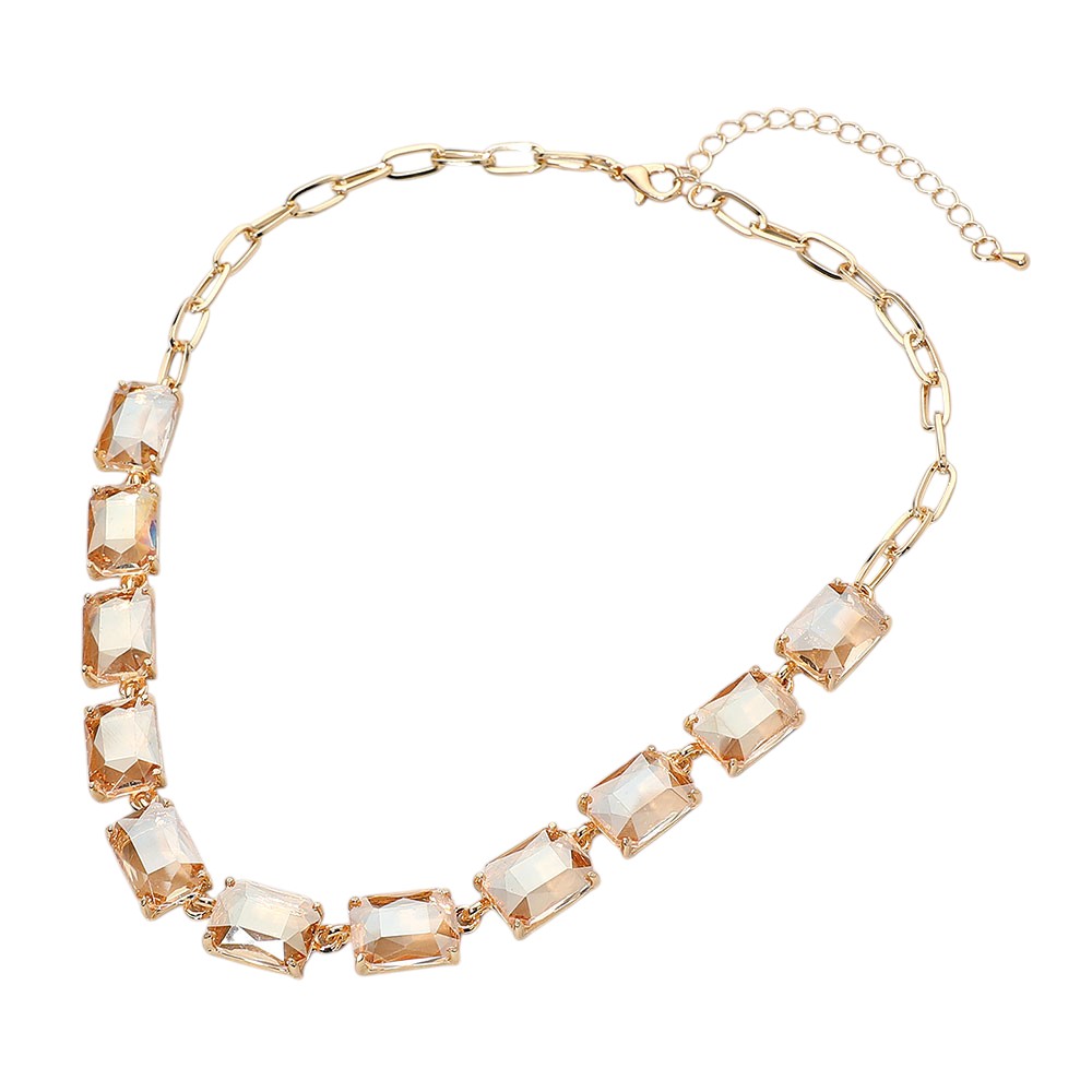 Cushion Rectangular Stone Cluster Link Evening Necklace