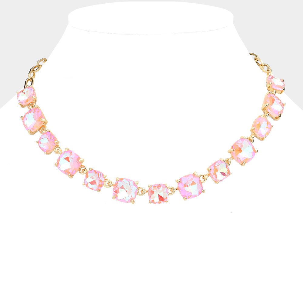 • Elevate your style with this stunning square cut gemstone statement necklace. Featuring shimmering faceted stones linked in a classic design, it offers a chic adjustable fit. Perfect for evening wear, weddings, parties, or adding a sophisticated sparkle to your everyday look.