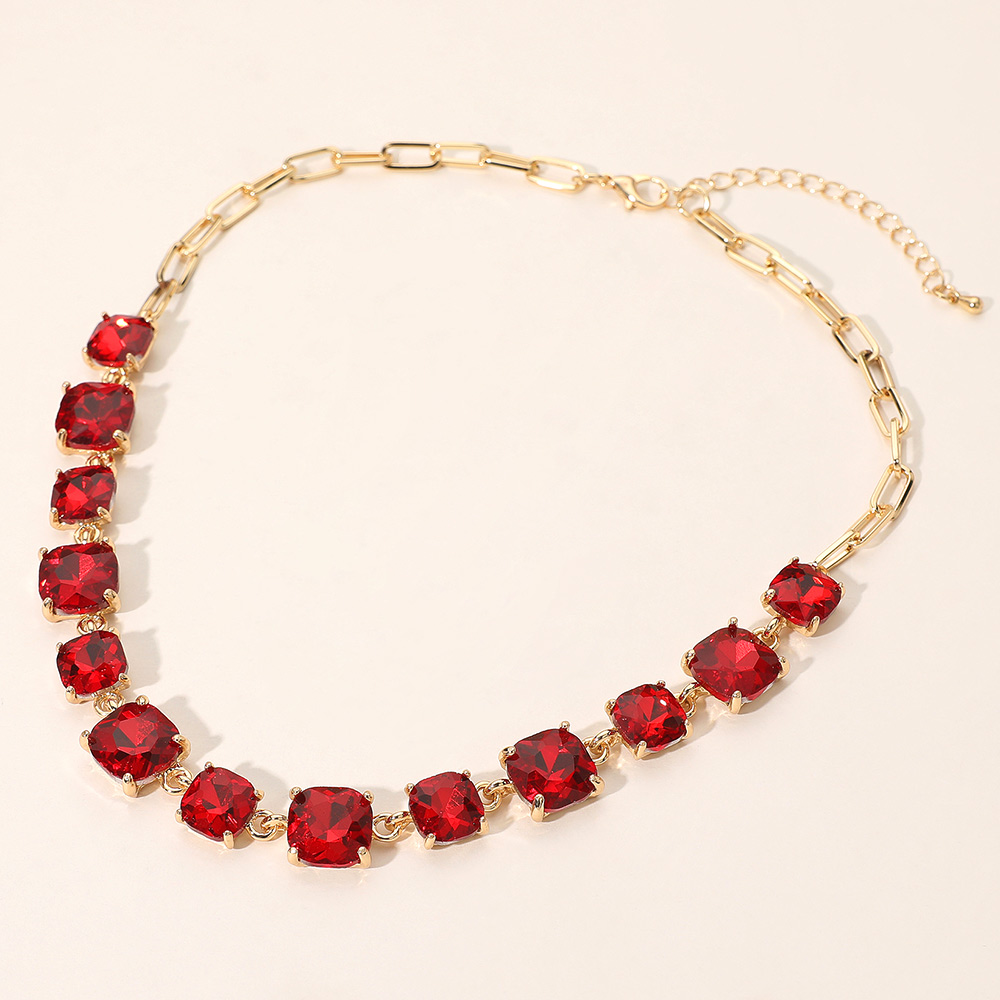 • Elevate your style with this stunning square cut gemstone statement necklace. Featuring shimmering faceted stones linked in a classic design, it offers a chic adjustable fit. Perfect for evening wear, weddings, parties, or adding a sophisticated sparkle to your everyday look.