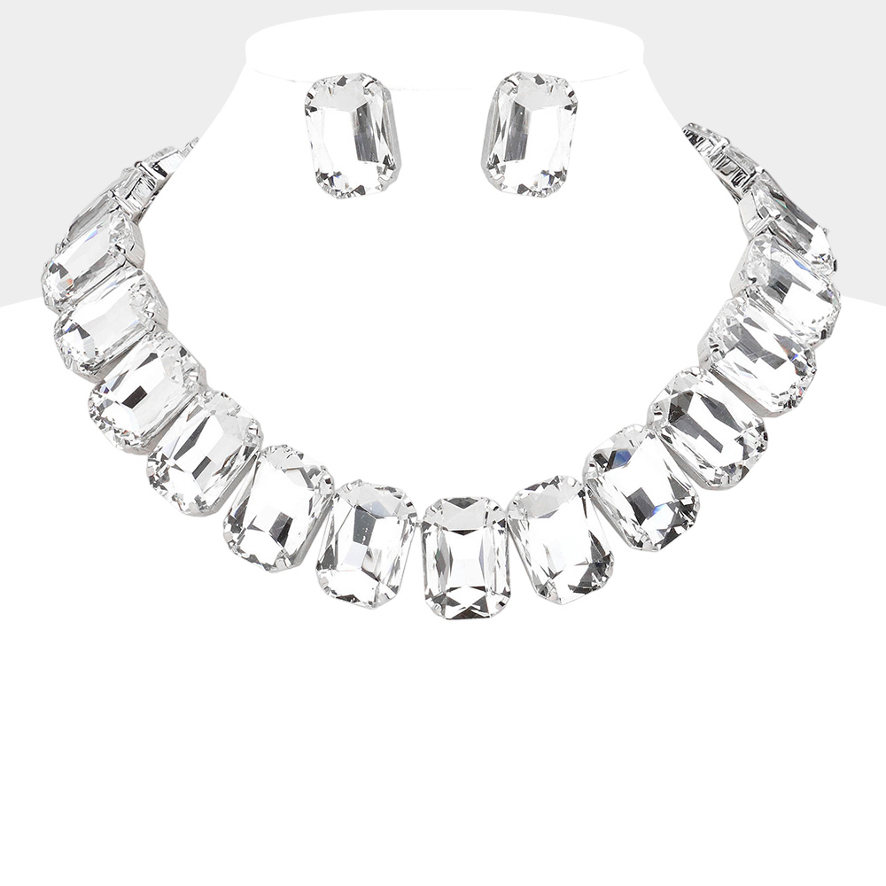 Emerald Cut Stone Collar Evening Necklace Emerald Cut Stone Collar Evening Necklace Emerald Cut Stone Collar Evening Necklace