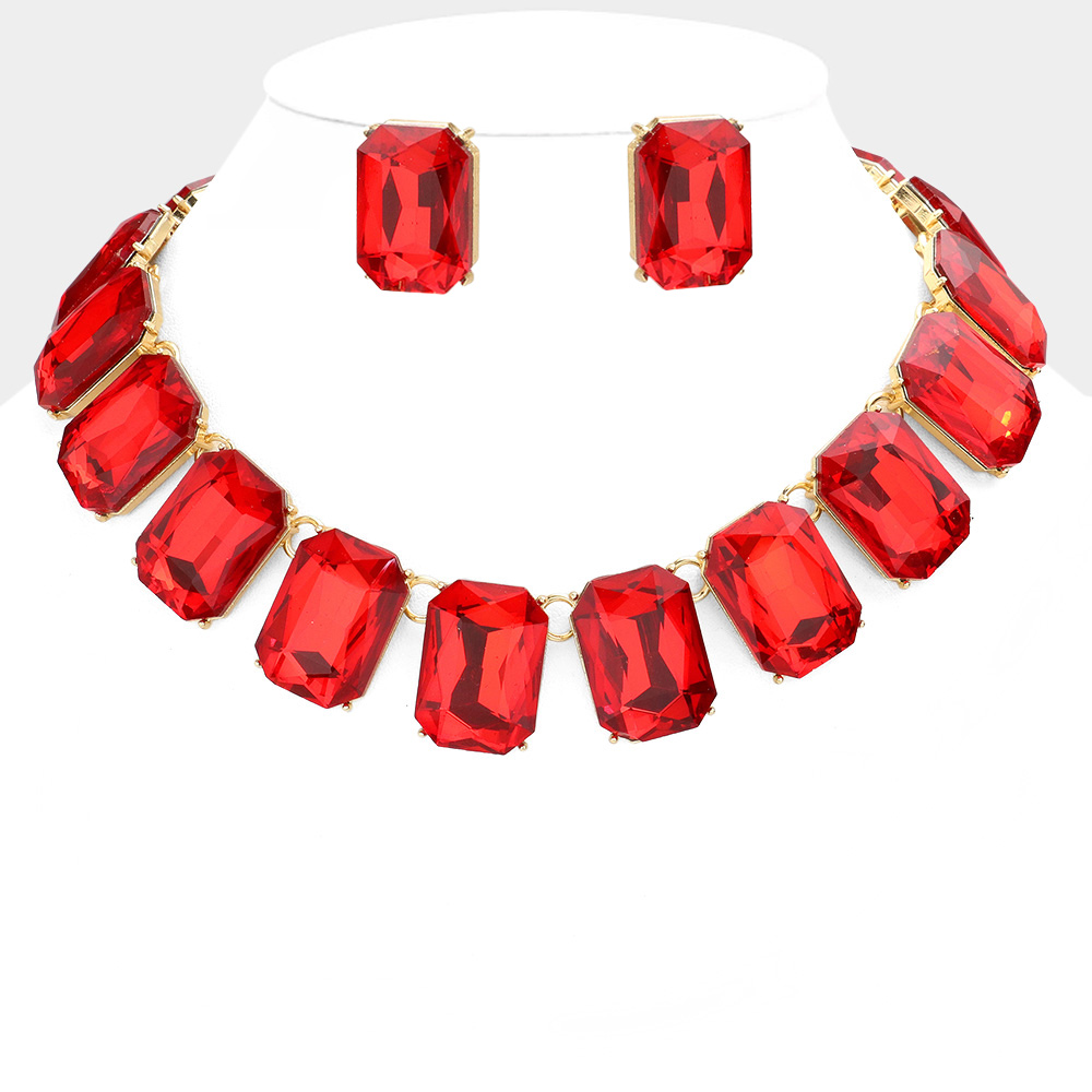 Emerald Cut Stone Link Evening Necklace