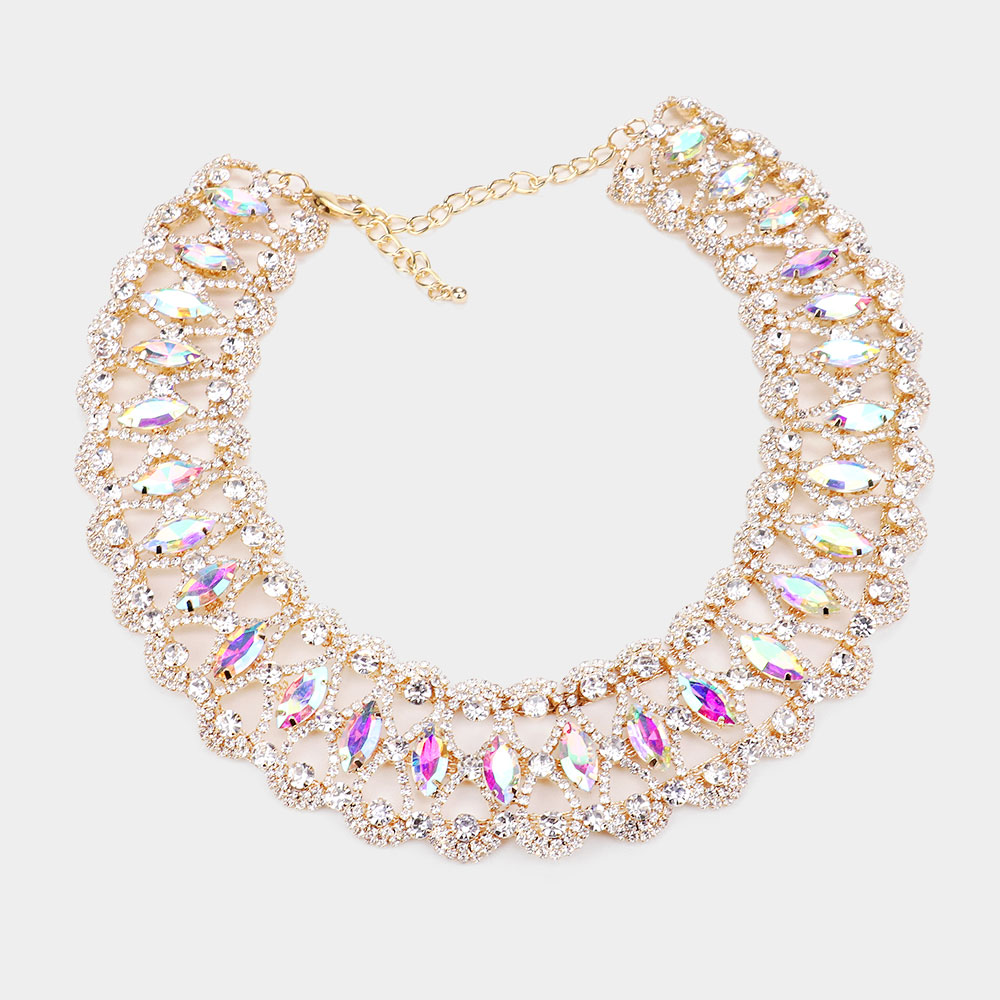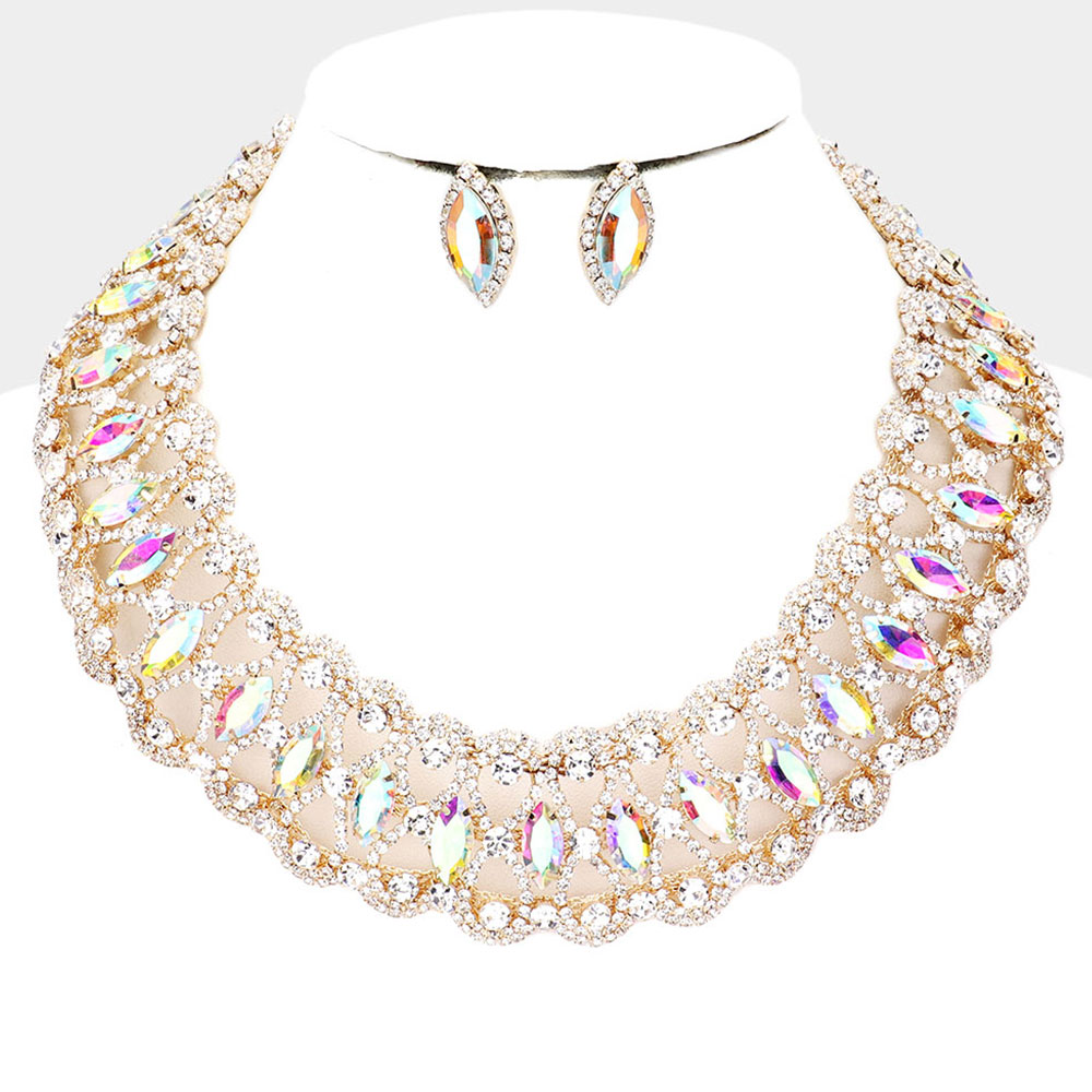 Oversized Teardrop Stone Embellished Rhinestone Pave Around Dangle Earrings