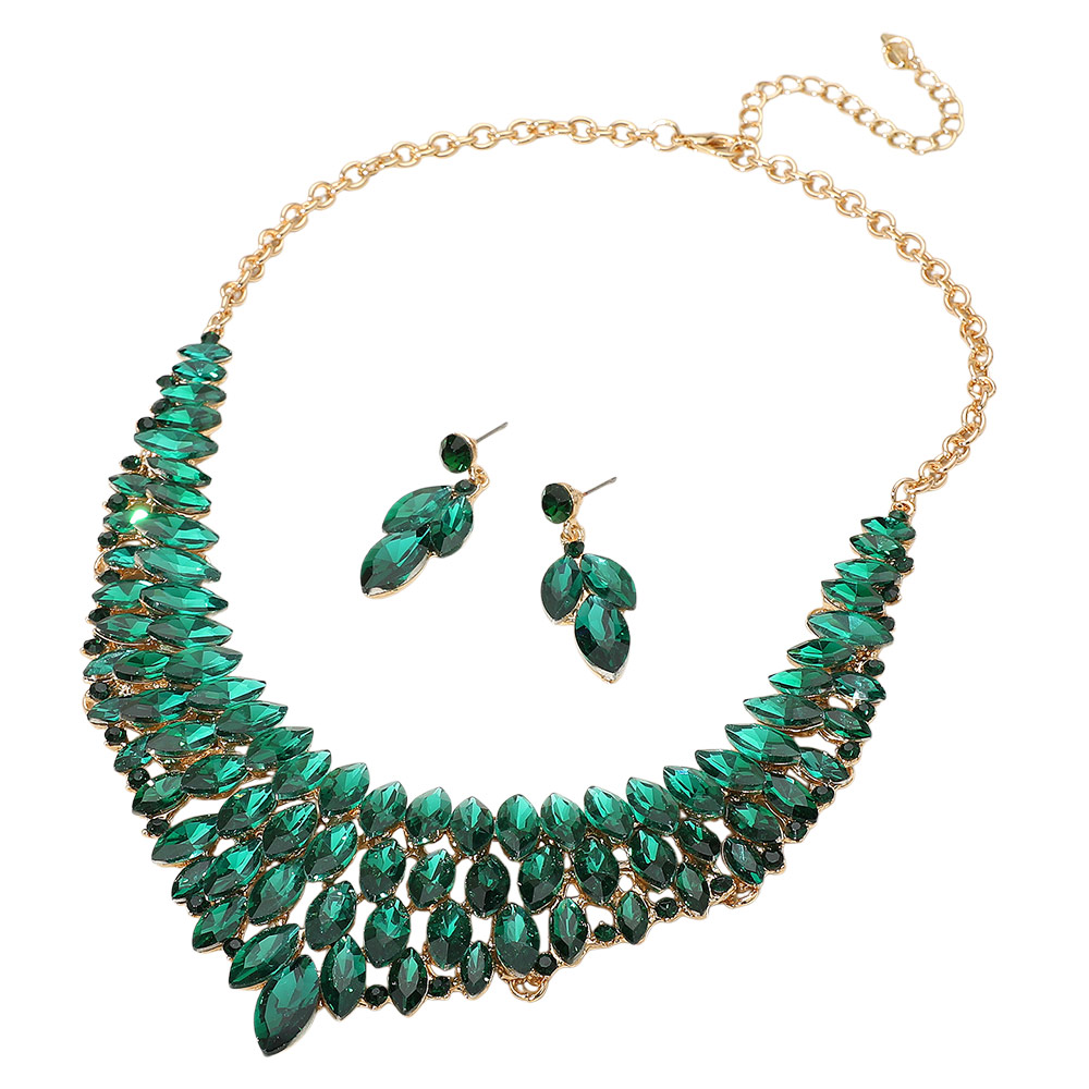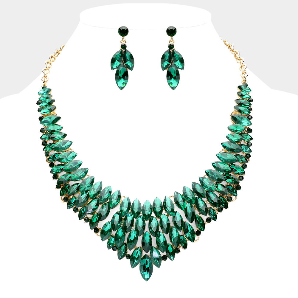 Marquise Stone Cluster Embellished Collar Evening Necklace