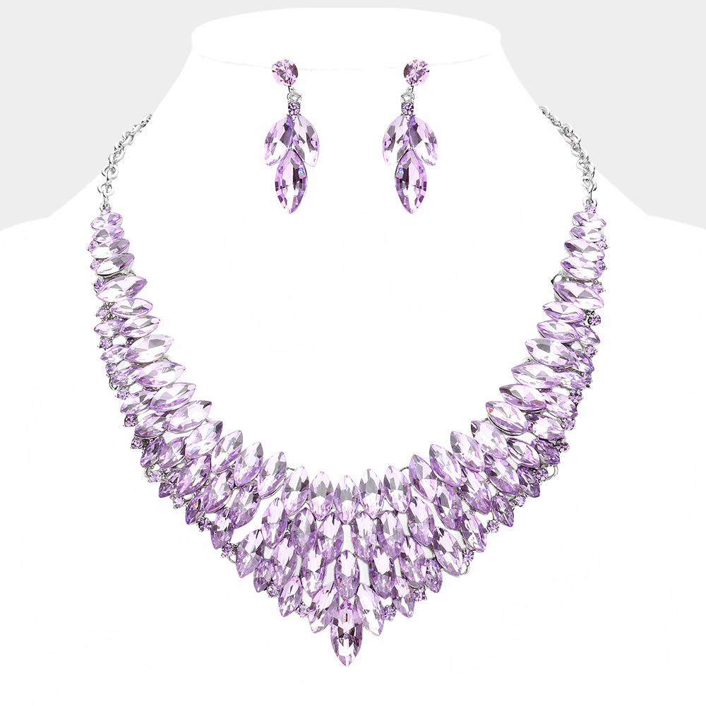 Marquise Stone Cluster Embellished Collar Evening Necklace