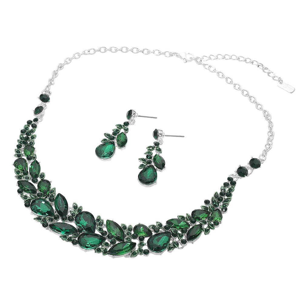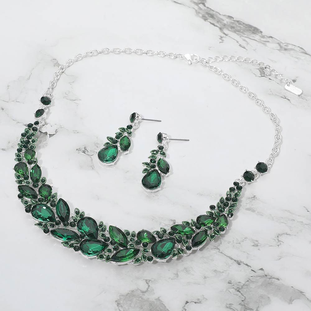 Details • Necklace Size : 18.5" + 2.75" L • Decor Size : 0.8" L • Earrings Size : 1.7" L • Elegant statement necklace and matching earring set designed to elevate formal and evening looks. Featuring layered crystal accents and a graceful silhouette, this coordinated set adds dramatic sparkle and refined style, making it ideal for special occasions, events, or standout gifting.