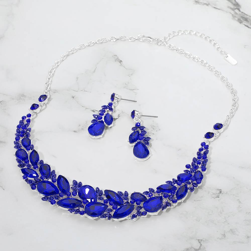 Marquise Stone Cluster Embellished Evening Necklace