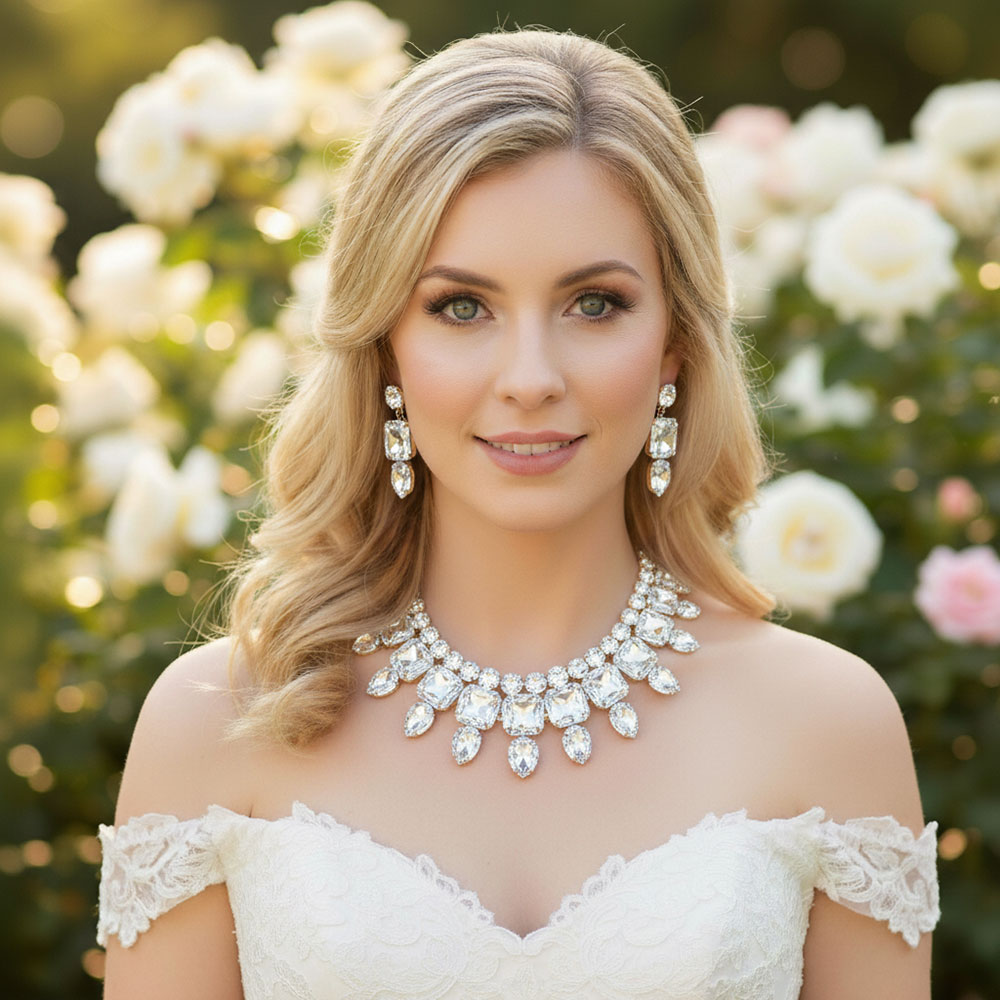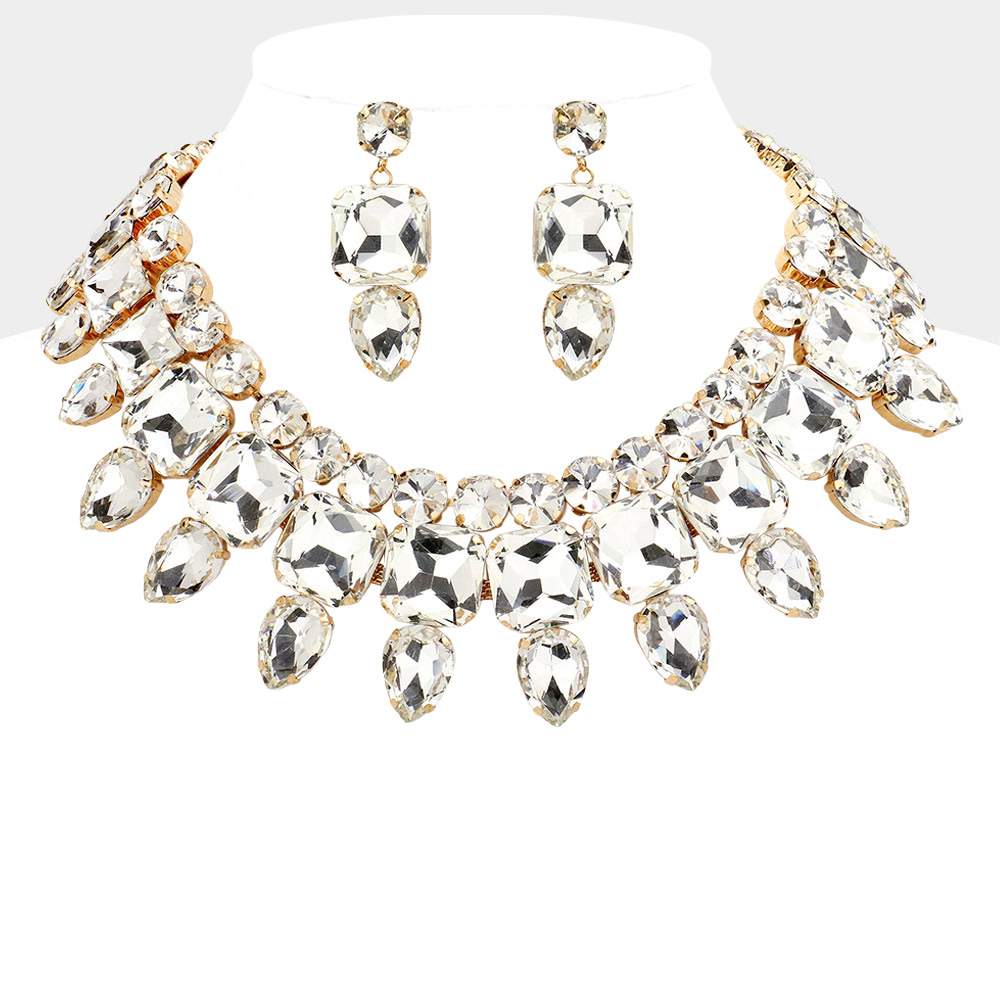 • Stunning statement jewelry set featuring a dramatic necklace and matching earrings adorned with large gemstones. Perfect for special occasions, parties, or evening events, adding glamour and sophistication to any outfit. A show-stopping accessory for an elegant, confident look.