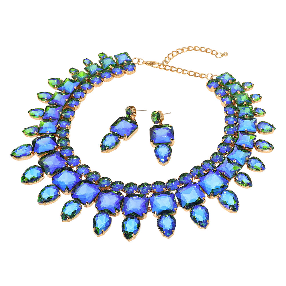• Stunning statement jewelry set featuring a dramatic necklace and matching earrings adorned with large gemstones. Perfect for special occasions, parties, or evening events, adding glamour and sophistication to any outfit. A show-stopping accessory for an elegant, confident look.