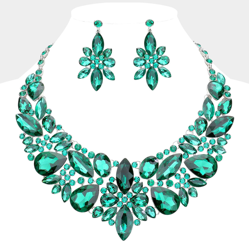 Details • Necklace Size : 17" + 3" L • Decor Size : 2.4" L • Earring Size : 2" L • Dazzle in timeless elegance with this rhinestone statement necklace and earring set. Featuring bold clustered crystals in a floral-inspired design, this matching set is perfect for weddings, galas, and special occasions. The adjustable necklace ensures a comfortable fit, while the lightweight earrings add just the right amount of sparkle. A must-have for bridal looks, evening wear, or anyone wanting to make a glamorous entrance.