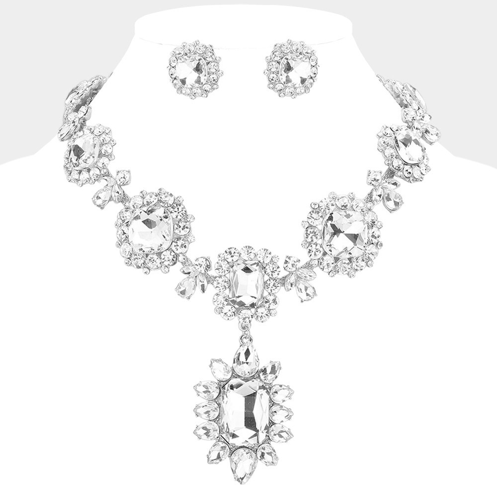 • Elegant statement necklace and earring set featuring brilliant crystal accents in a bold design. Perfect for weddings, formal events, or evening wear, this dazzling jewelry set adds glamour and sophistication to any outfit with its radiant sparkle and timeless appeal.