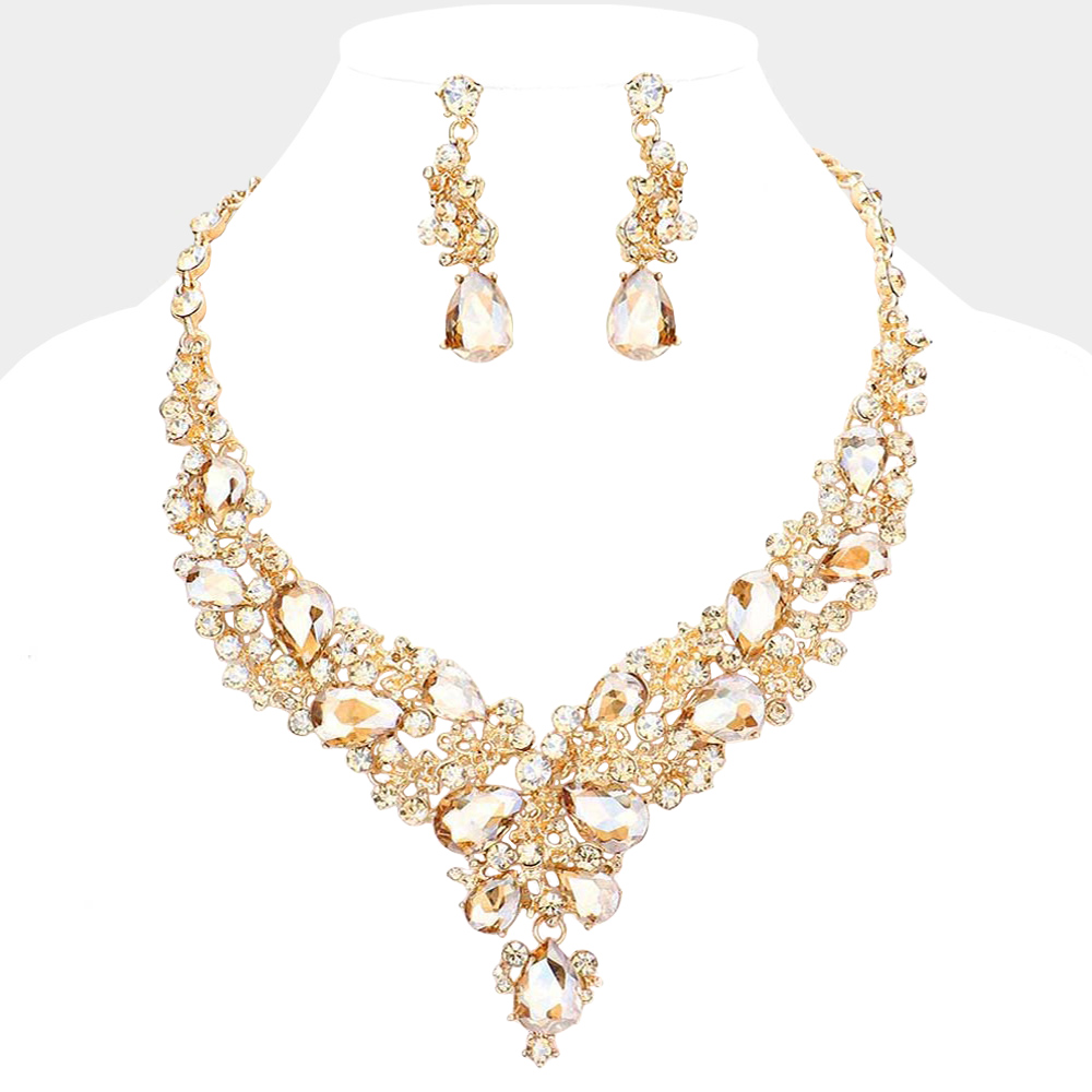 Marquise Stone Cluster Embellished Rhinestone Paved Necklace