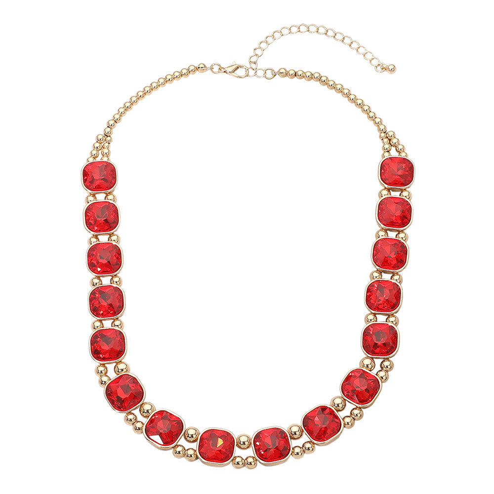 Details • Necklace Size : 18" + 3.5" L • Decor Size : 0.5" L • Elegant linked necklace featuring evenly spaced square-cut stones framed by polished metal accents. Designed with an adjustable chain for versatile styling, this piece adds refined sparkle to everyday looks, special occasions, and layered jewelry collections, making it a timeless addition for retail displays and gifting. • Lead and Nickel Compliant