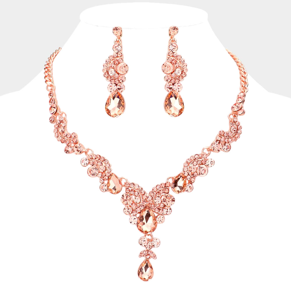 Teardrop Stone Accented Evening Necklace Teardrop Stone Accented Evening Necklace