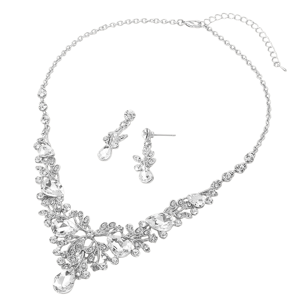 Teardrop Stone Cluster Embellished Branch Evening Necklace