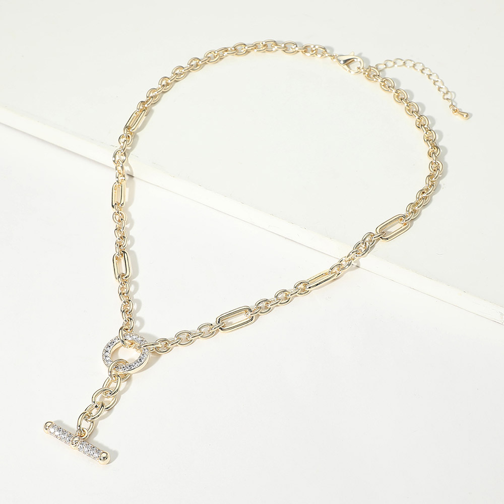 • This modern toggle chain necklace features an elongated link design with a sleek front toggle closure and refined pavĂ©-style accent detail. Designed for effortless styling, it works as a statement piece or layering essential, offering versatile appeal for everyday wear, gifting, and curated boutique jewelry collections.