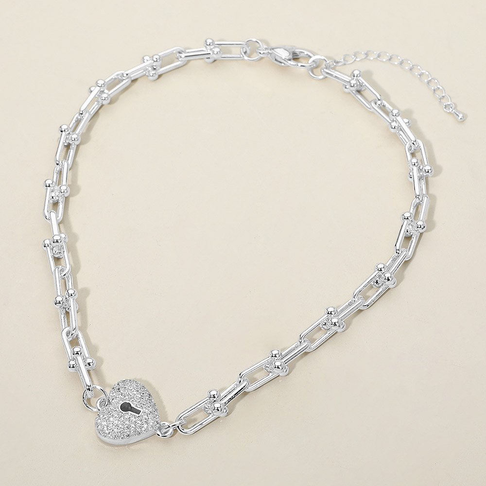 Details • Necklace Size : 16.5" + 2" L • Decor Size : 0.8" L • This stylish chain necklace features a heart lock charm with sparkling CZ accents, creating a bold yet elegant statement. Designed for everyday wear or special occasions, it adds a modern romantic touch and pairs easily with both casual and elevated looks. • CZ Cubic Zirconia • Gold Dipped