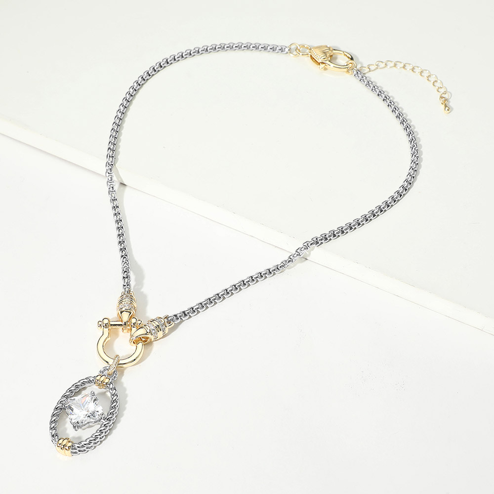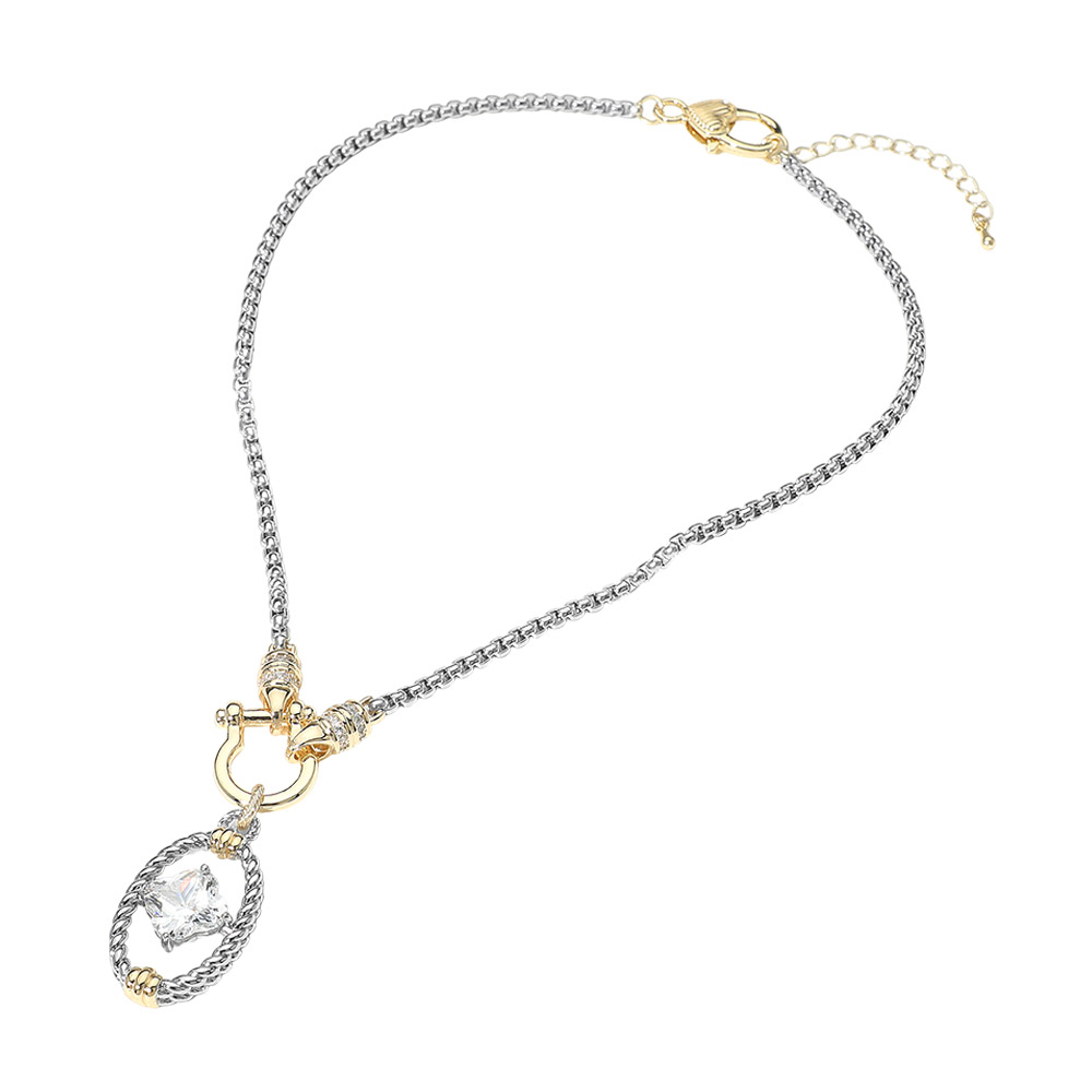 Details • Necklace Size : 18" + 2" L • Decor Size : 2" L • This twisted chain pendant necklace features a sculptural drop design with a refined quatrefoil centerpiece for elevated everyday styling. Designed to layer beautifully or stand alone, it adds modern sophistication to casual and dressy looks, making it ideal for gifting, boutique collections, and trend-focused fashion displays. • CZ Cubic Zirconia • Gold Dipped