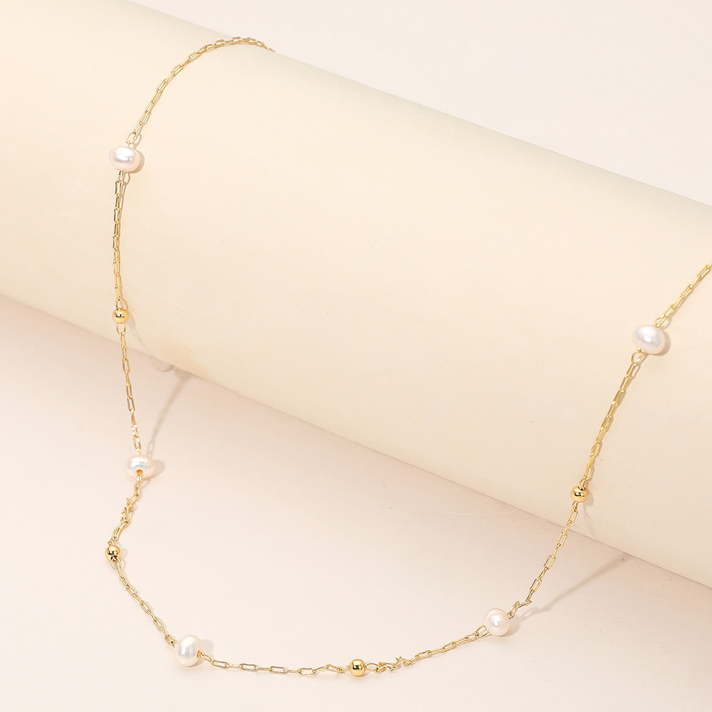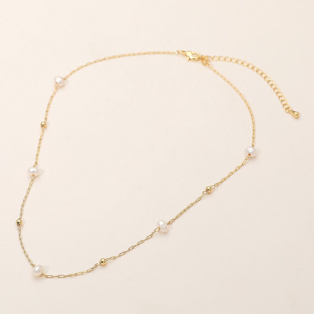 18K Gold Dipped Freshwater Pearl Station Chain Necklace 18K Gold Dipped Freshwater Pearl Station Chain Necklace 18K Gold Dipped Freshwater Pearl Station Chain Necklace