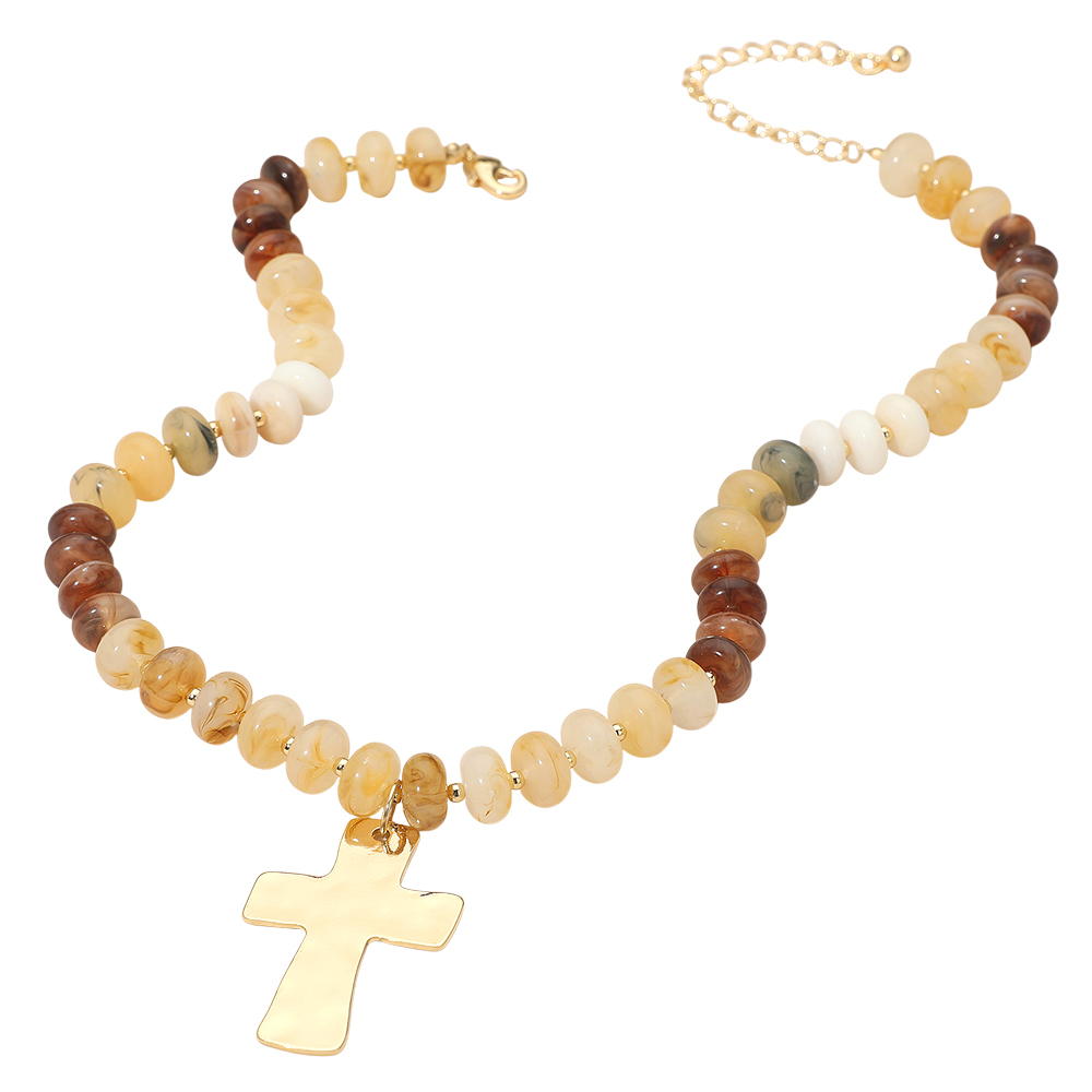 Details • Necklace Size : 18" + 3" L • Decor Size : 0.4" L • Pendant Size : 1.25" X 1.75" • Express timeless style with this beaded necklace featuring smooth multitone beads and a bold cross pendant. Ideal for layering or wearing as a statement piece, it’s perfect for both casual and special occasions, adding meaning and elegance to any look. • Gold Dipped • Lead and Nickel Compliant