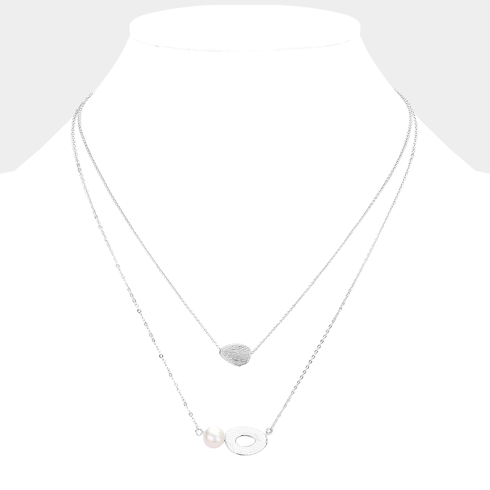 3PCS - Quatrefoil Pointed Pearl Metal Ball Beaded Stretch Multi Layered Bracelets