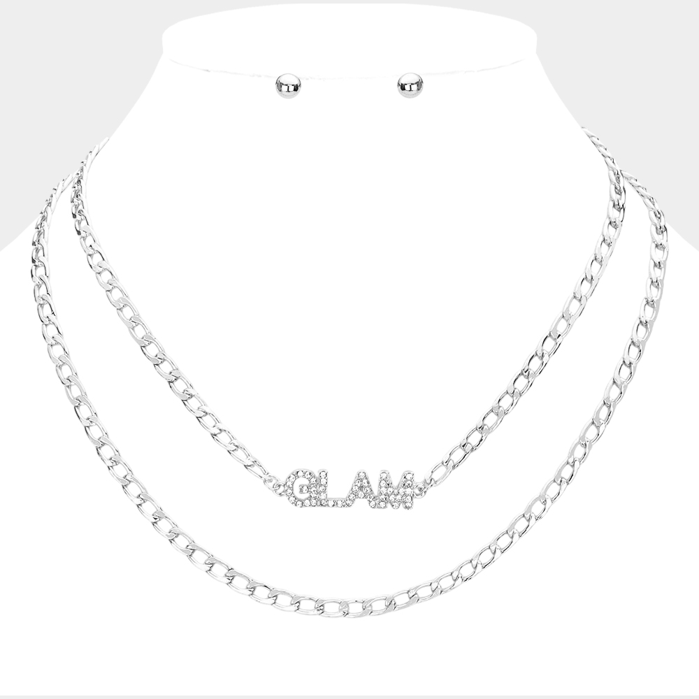 2PCS - GLAM Rhinestone Embellished Pendant Message Necklaces