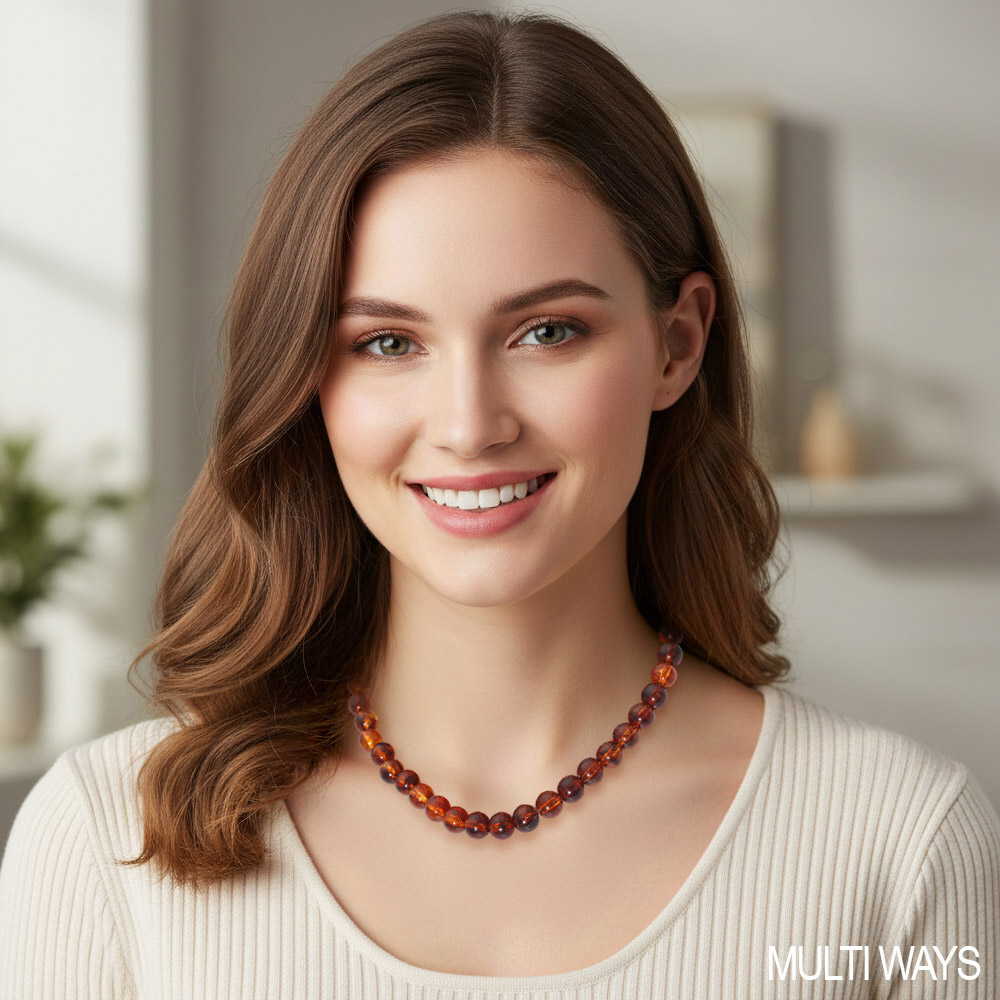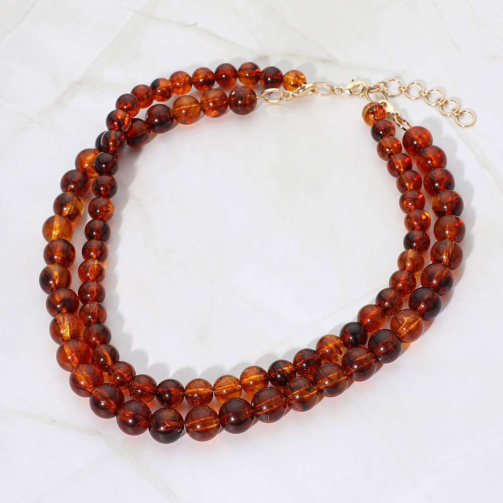 Details • Necklace 1 Size : 18" + 2" L, 0.3" L • Necklace 2 Size : 17.75" L, 0.5" L • This layered beaded necklace adds rich dimension and timeless appeal to any outfit. Its polished spheres create a graceful flow that elevates both everyday and evening looks, offering a versatile statement piece designed to complement a wide range of personal styles. • Lead and Nickel Compliant