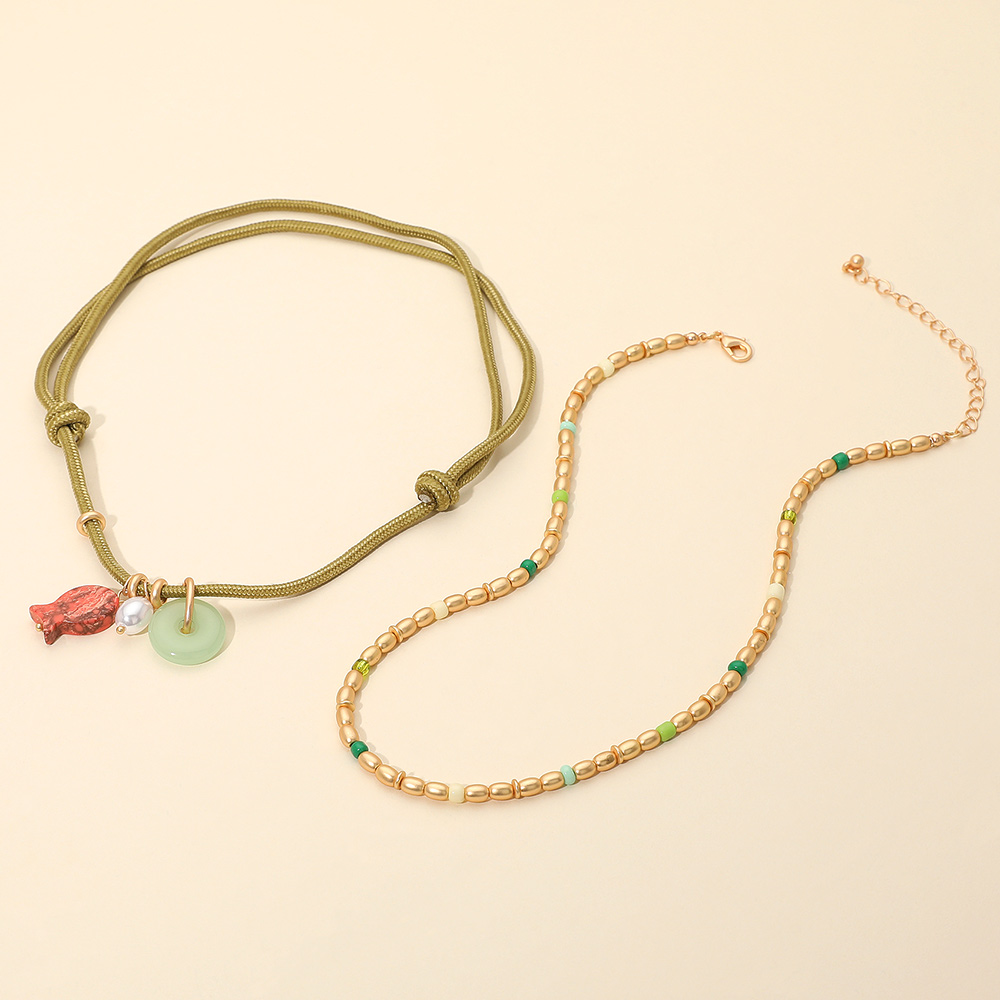 Details • Necklace 1 Size : 27" L, 1" L / Adjustable • Necklace 2 Size : 16" + 0.3" L / 0.1" L • This two-piece necklace set includes a beaded chain and an adjustable cord design enhanced with distinctive charm details. Perfect for layering or wearing separately, it offers a stylish blend of texture and elegance for everyday wear or dressed-up looks. • Lead and Nickel Compliant