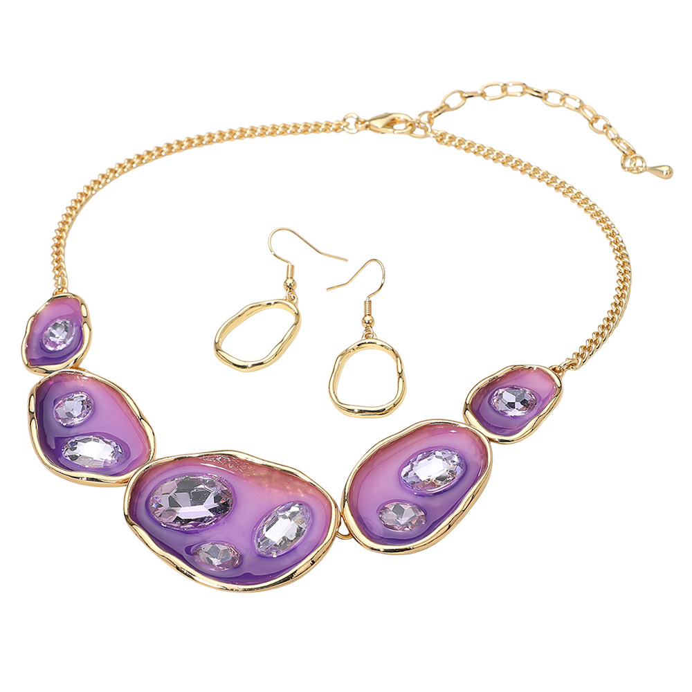 • Contemporary jewelry set featuring a bold necklace and matching earrings with artistic gem accents framed in fluid shapes. Perfect for parties, formal events, or chic everyday wear. A statement-making accessory that combines modern style with elegant sophistication.