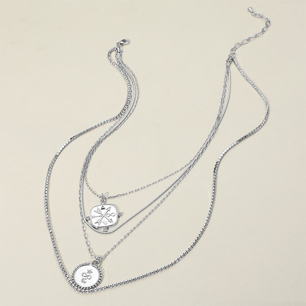 Arrow Star Moon Accented Metal Pendant Multi Layered Bib Necklace