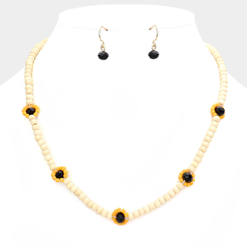 Faceted Floral Accent Wooden Beaded Necklace Faceted Floral Accent Wooden Beaded Necklace Faceted Floral Accent Wooden Beaded Necklace