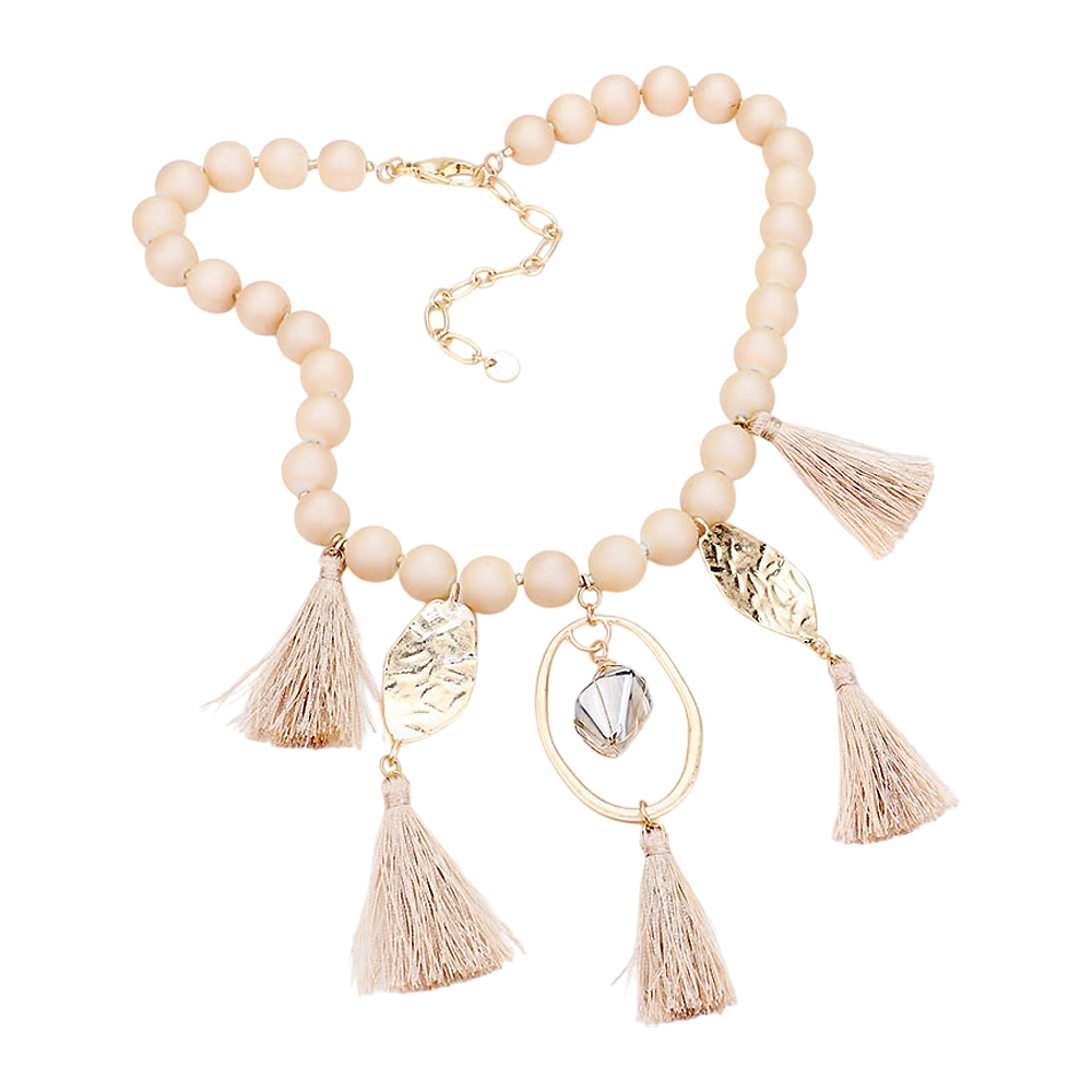 Rhinestone Rectangular Bead Wood Bar Statement Necklace