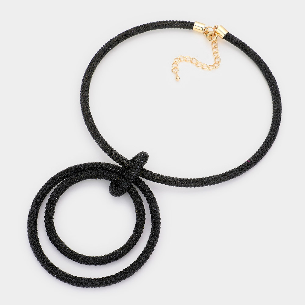 Bling Double Open Circle Pendant Necklace