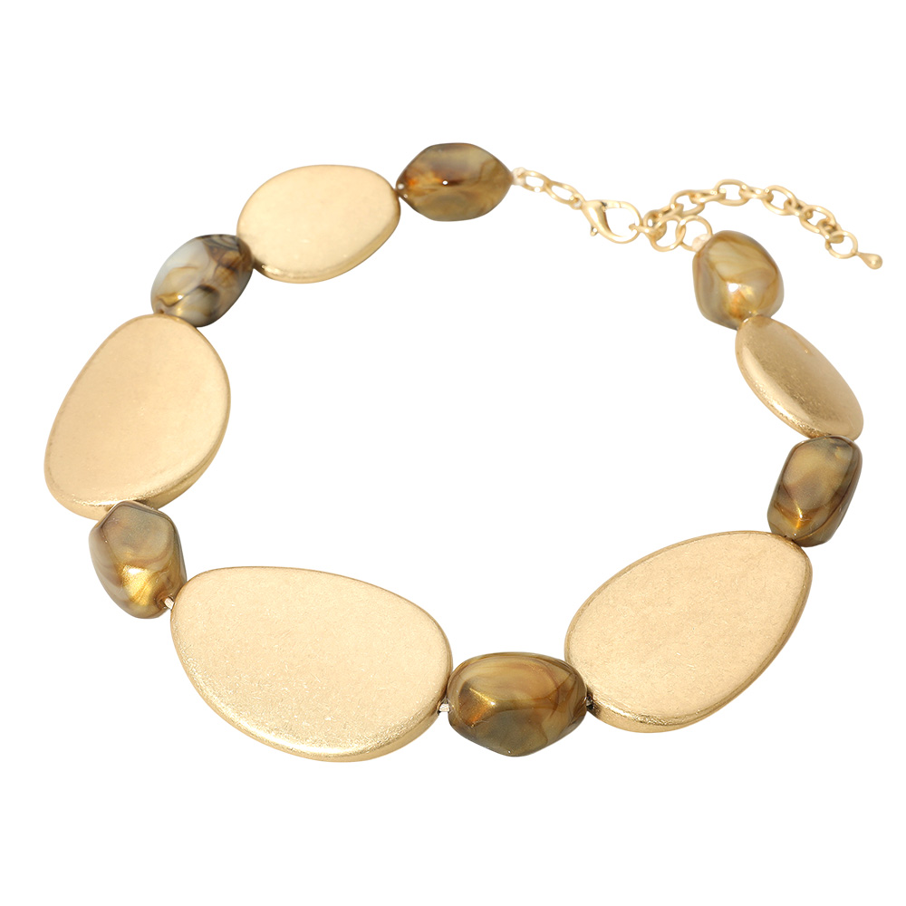 Bold Brushed Metal Plate Marbled Pebble Beaded Statement Necklace