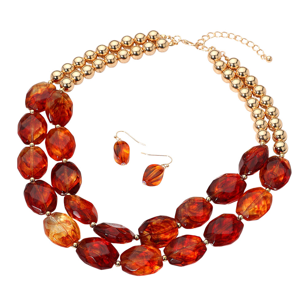 • Bold statement necklace and earring set featuring layered beads for a striking and elegant look. Designed to elevate any outfit, this coordinated jewelry set adds a touch of sophistication and makes a perfect choice for special occasions or standout styling.